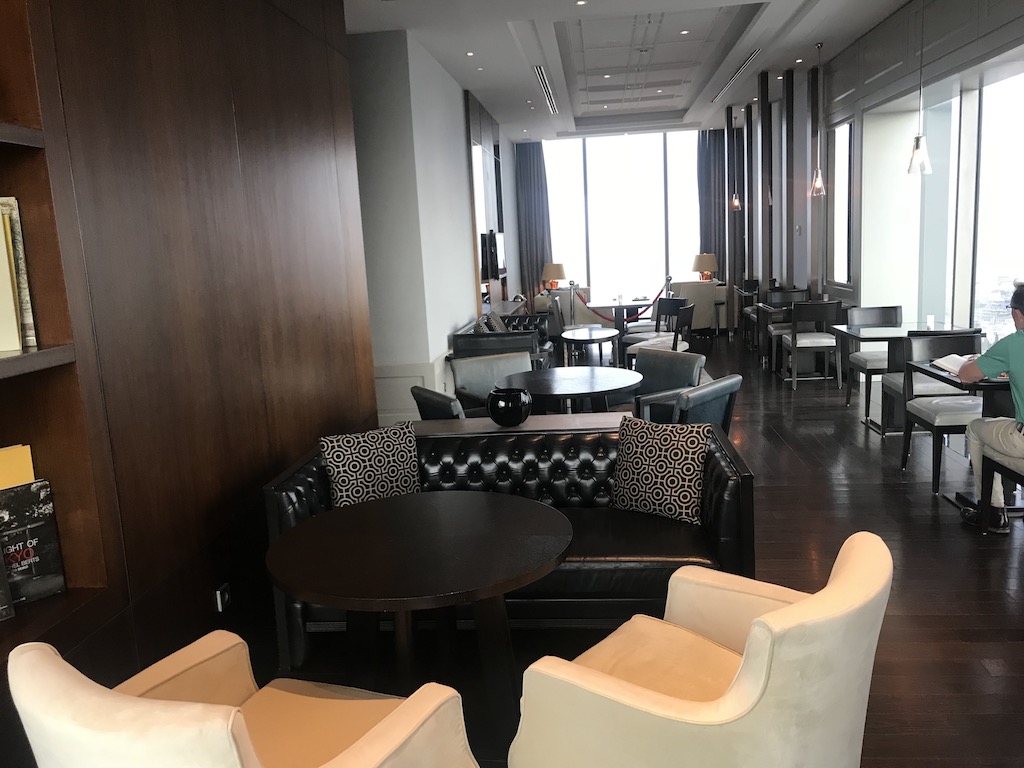 Die große Executive Lounge des Hotels befindet sich, zusammen mit einem weiteren Restaurant, im 34. und damit höchstem Stockwerk des Hotels. Statuskunden von Hilton Honors wird übrigens auch proaktiv ein Check-In hier angeboten.
