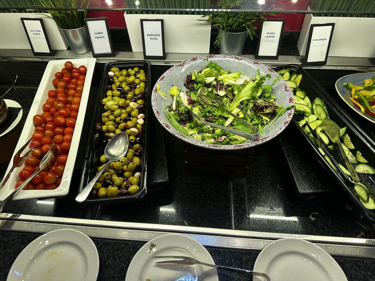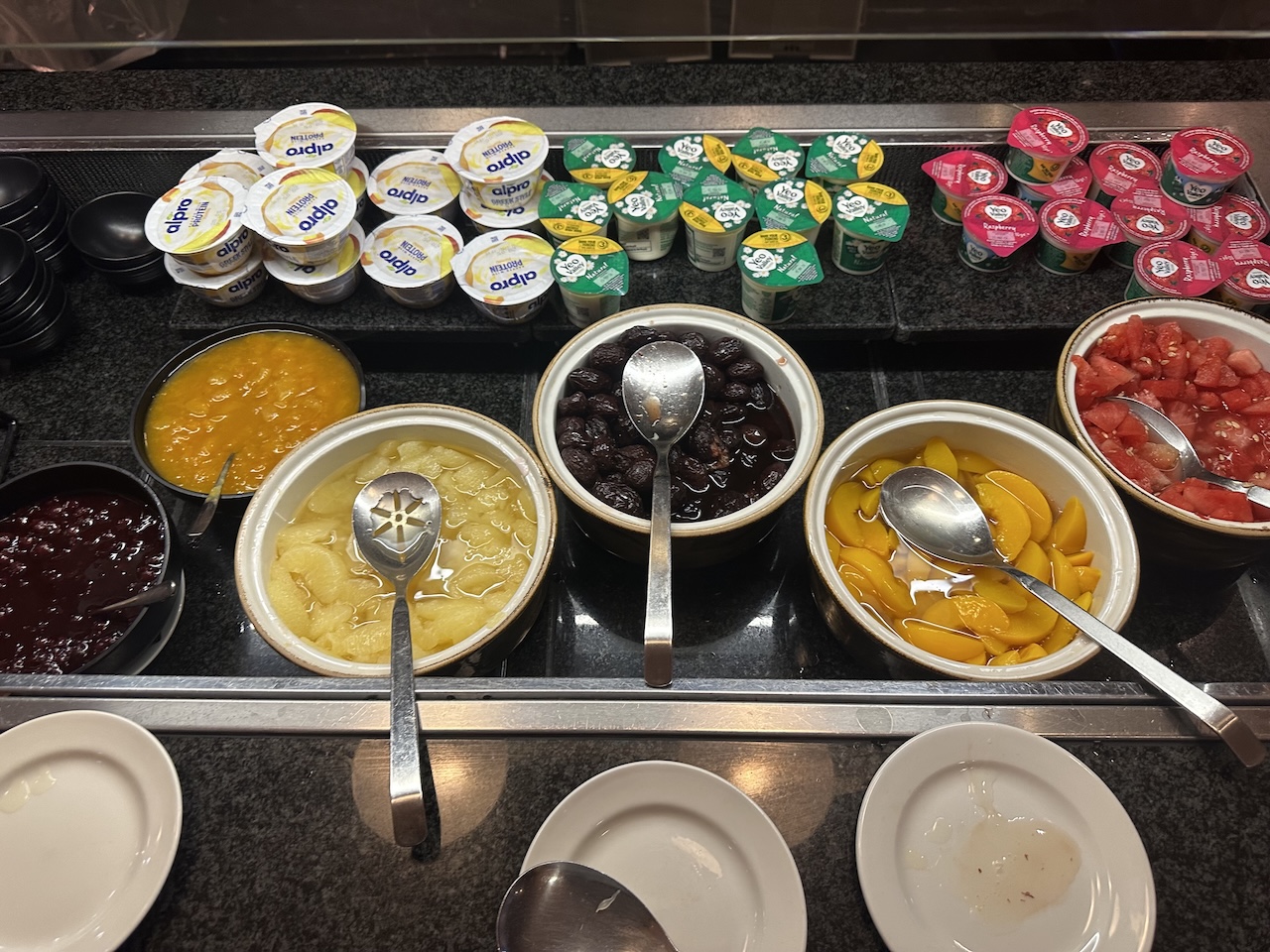 Einige Früchte kommen aus der Dose, die Säfte sind auch nicht frisch und beim Kaffee war auch Luft nach oben. Trotzdem war das Buffet unterm Strich aber okay, wir haben hier auch schon deutlich schlechtere Angebote gesehen. Gegen Ende wurde es auch etwas leerer, daher konnte ich noch in Ruhe die Bilder machen.