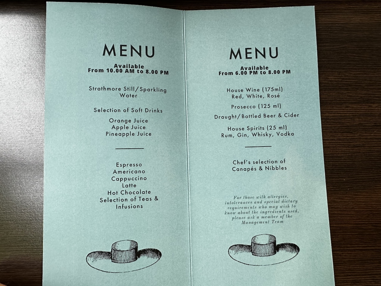 In einer separaten Area kann man dann aus einer eigenen Karte für zwei Stunden unbegrenzt Getränke bestellen, dazu wird eine Platte mit Snacks gereicht. Im Sortiment sind Softdrinks, Heißgetränke, Bier, Sekt, Wein und Spirituosen.