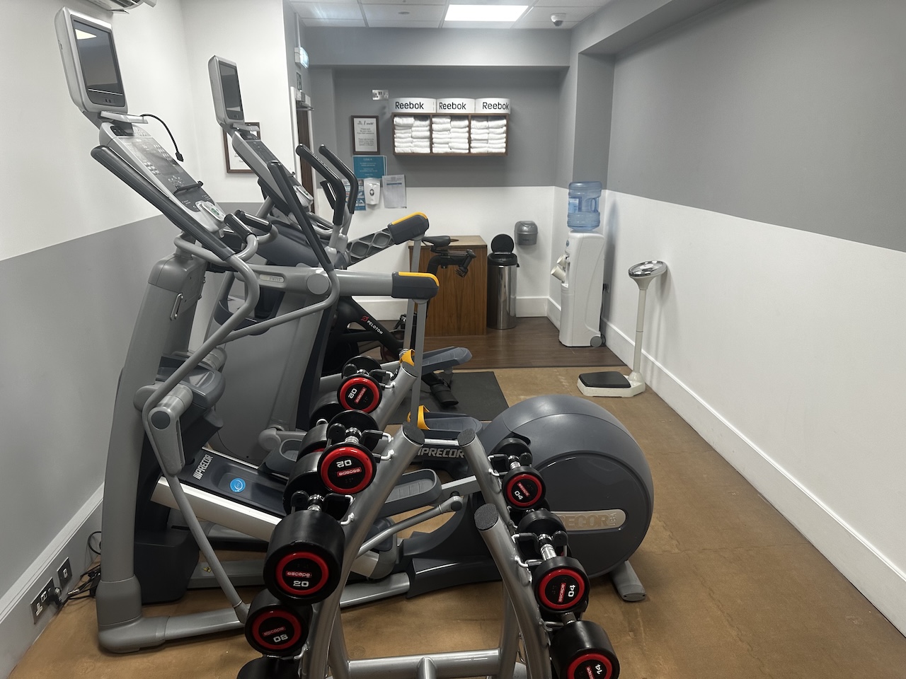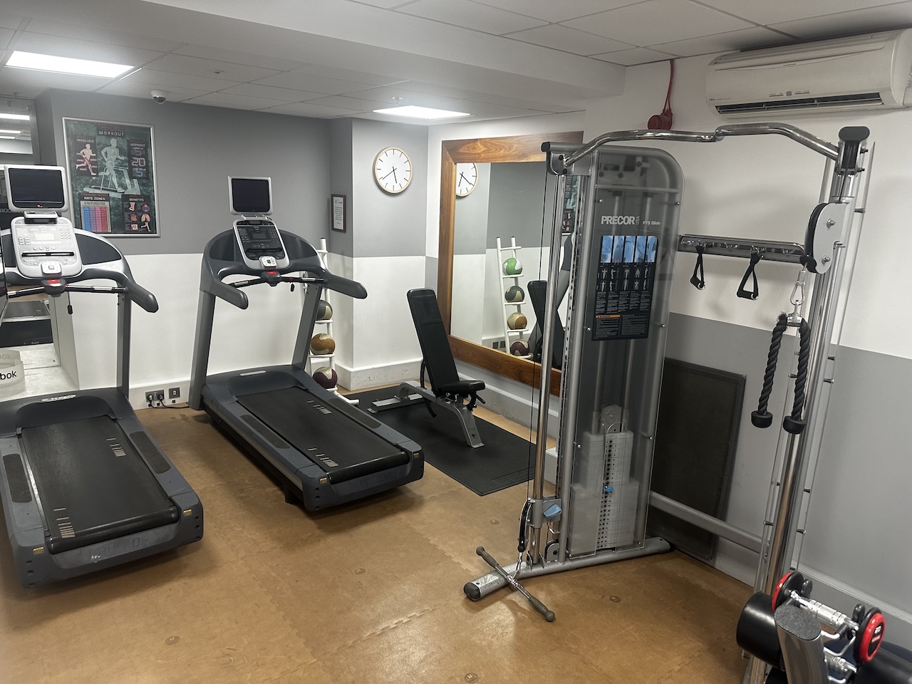 Im Keller des Hotels ist ein Gym, der Raum ist nicht gerade einladend und auch ziemlich vollgestopft.