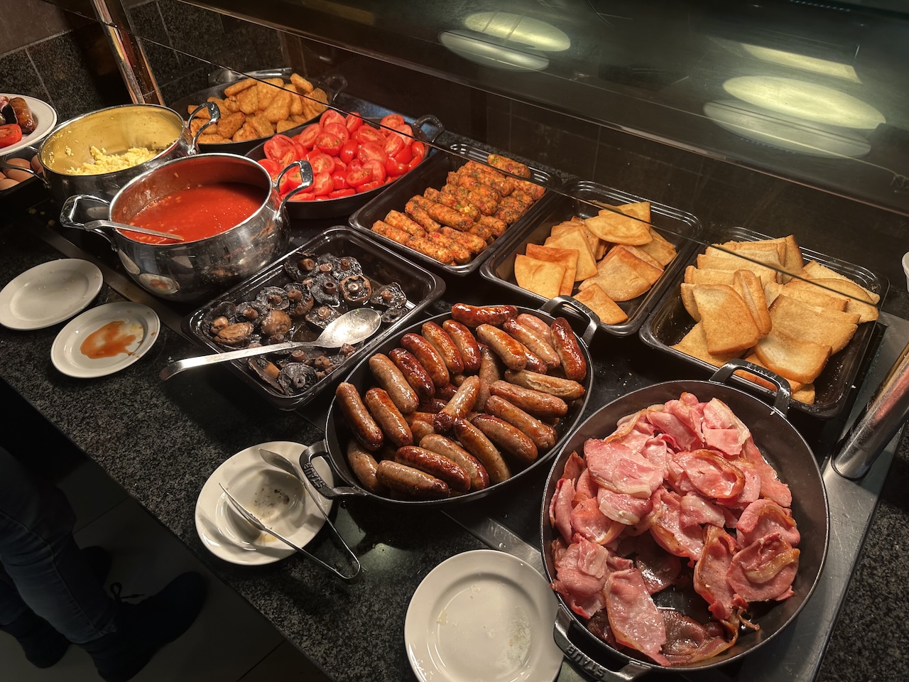 Das Angebot ist dafür aber ziemlich groß und lässt wenig Wünsche offen. Ihr findet hier alles für ein kontinentales als auch ein englisches Frühstück. Neben Aufschnitt, Wurst, Käse, Aufstrich, Gebäck und Bohnen sowie Würstchen ist auch viel Vegetarisches dabei. Die Qualität lässt zum Teil zwar etwas zu Wünschen übrig, wirklich beschweren darf man sich aber nicht.