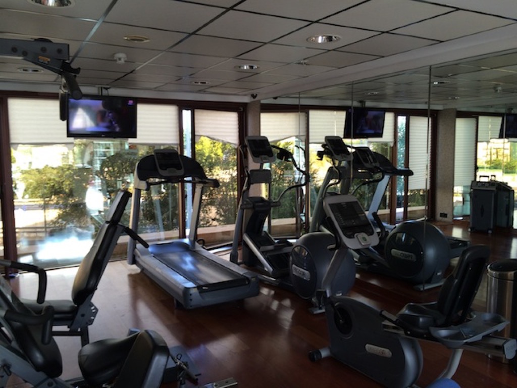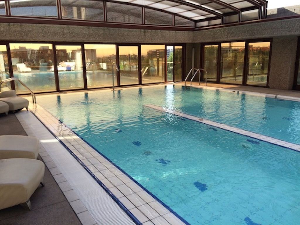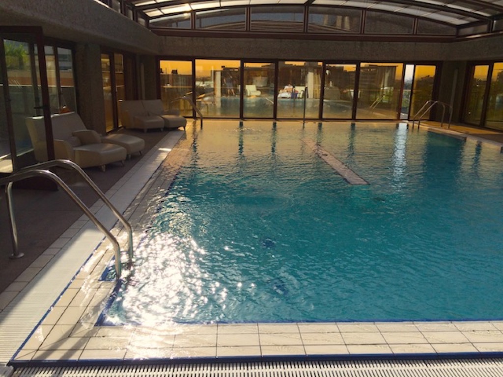 Im ersten Stockwerk befand sich der Fitnessbereich und der Pool. Beide waren relativ klein, aber als ich dort war, war der Bereich sehr leer. Der Pool war in einer Art Wintergarten mit einem Schiebedach, dass an diesem Morgen geöffnet war, untergebracht. Bei Temperaturen um 38°C auch angenehm.