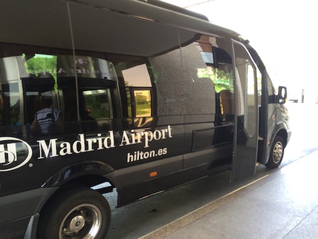 Nach meinem LATAM Flug von Frankfurt nach Madrid war es, bis ich den Flughafen verlassen hatte schon reichlich spät geworden. Daher hatte ich mich gefreut, dass ich mit dem Hilton Madrid Airport ein Hotel direkt am Flughafen gebucht hatte und nicht erst noch in die Stadt fahren musste. Das Hilton Madrid Airport liegt allerdings nicht direkt am Terminal, sondern man muss mit einem Shuttle Bus zum Hotel fahren. Dieser fuhr auch kurz nachdem ich aus dem Flughafen gekommen bin.