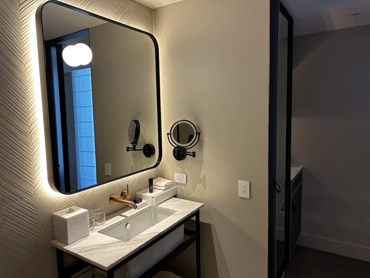 Wie bei fast allen Hiltons in Australien wurden am Vortag diverse Zimmer zur Auswahl gestellt, bei den meisten handelte es sich um zahlungspflichtige Upgrades. Bei unserer Ankunft war die Rezeptionistin ganz begeistert von dem Zimmer 721, dieses war für uns vorgesehen aber noch nicht frei.