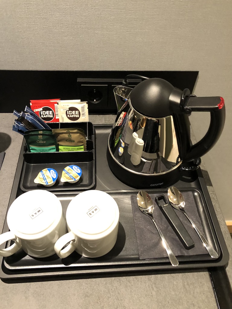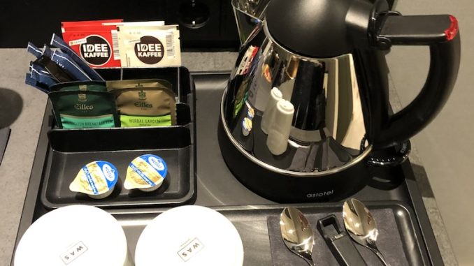 Wasserkocher samt Kaffee und Tee sind für alle Gäste kostenfrei, das Wasser bekommen nur Honors Kunden gratis. Ein weiterer Pluspunkt sind die vielen Steckdosen und USB-Schnittstellen.