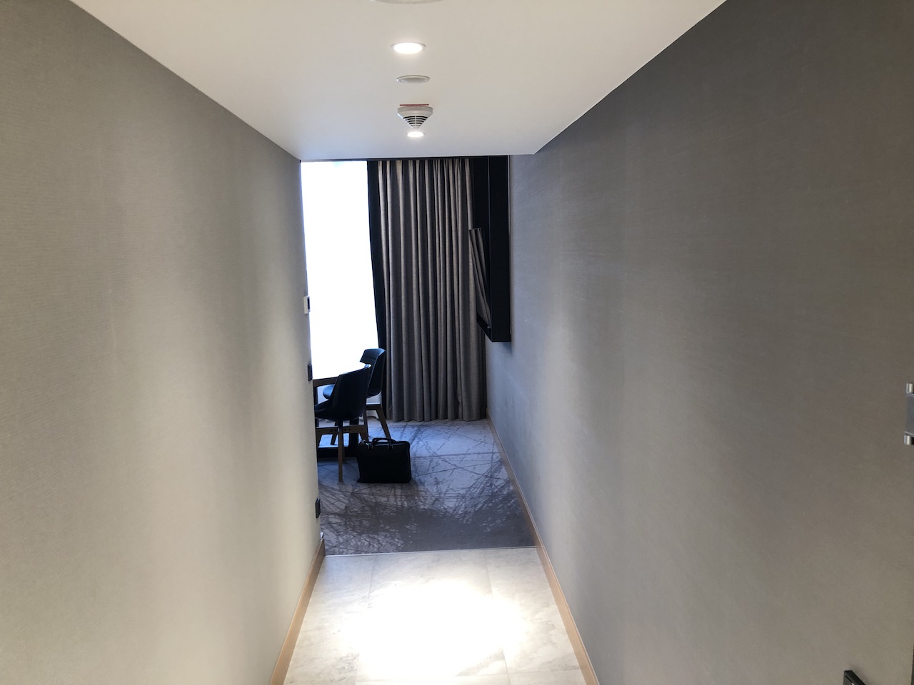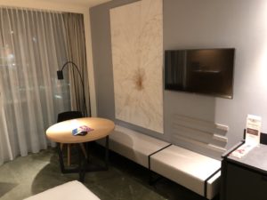 Einmal hatten wir eine größere Executive Suite, es handelte sich auch hier um einen einzelnen großen Raum mit abgetrennten Bad. Am Eingang war eine Garderobe gefolgt von einem Flur zum Hauptraum.