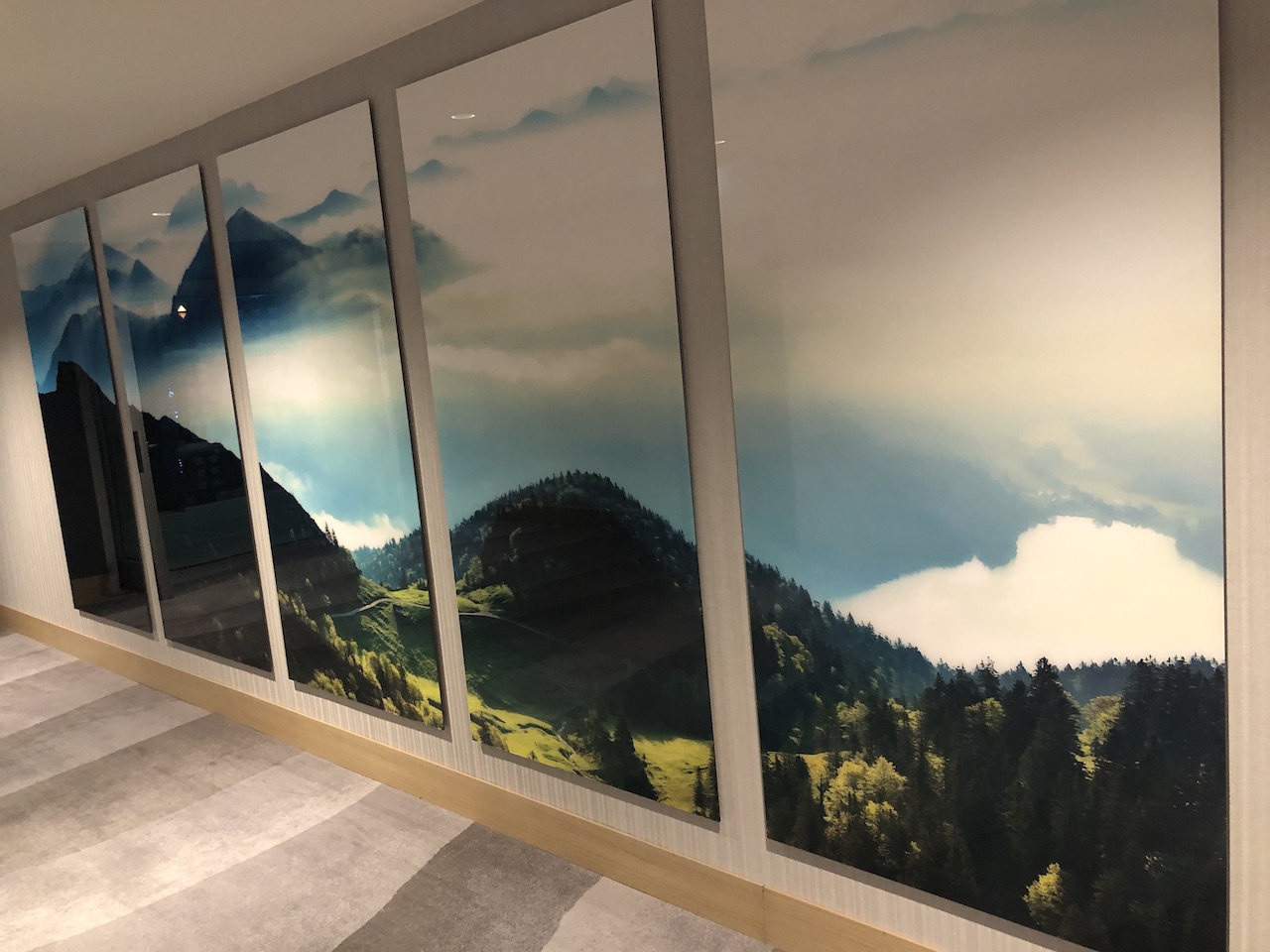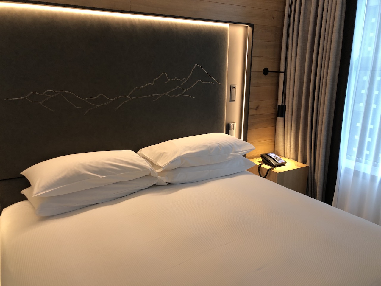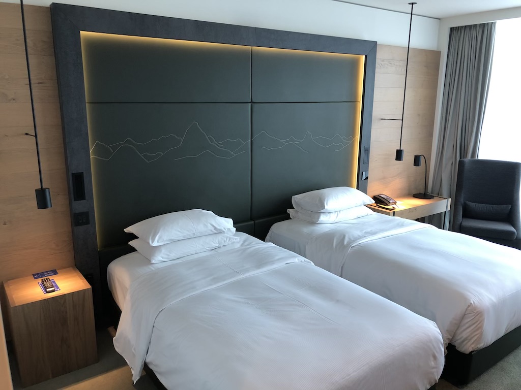 Die Zimmer sind im alpenländischen Design mit viel Holz, indirektem Licht, freundlich und sehr zeitlos gestaltet. Das Alpenpanorama ist auf Bildern auf den Fluren und am Kopfende der Betten präsent. Die Beleuchtung ist dezent und lässt sich von mehreren Stellen steuern, das braucht zunächst ein wenig Übung.