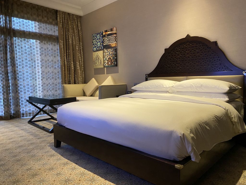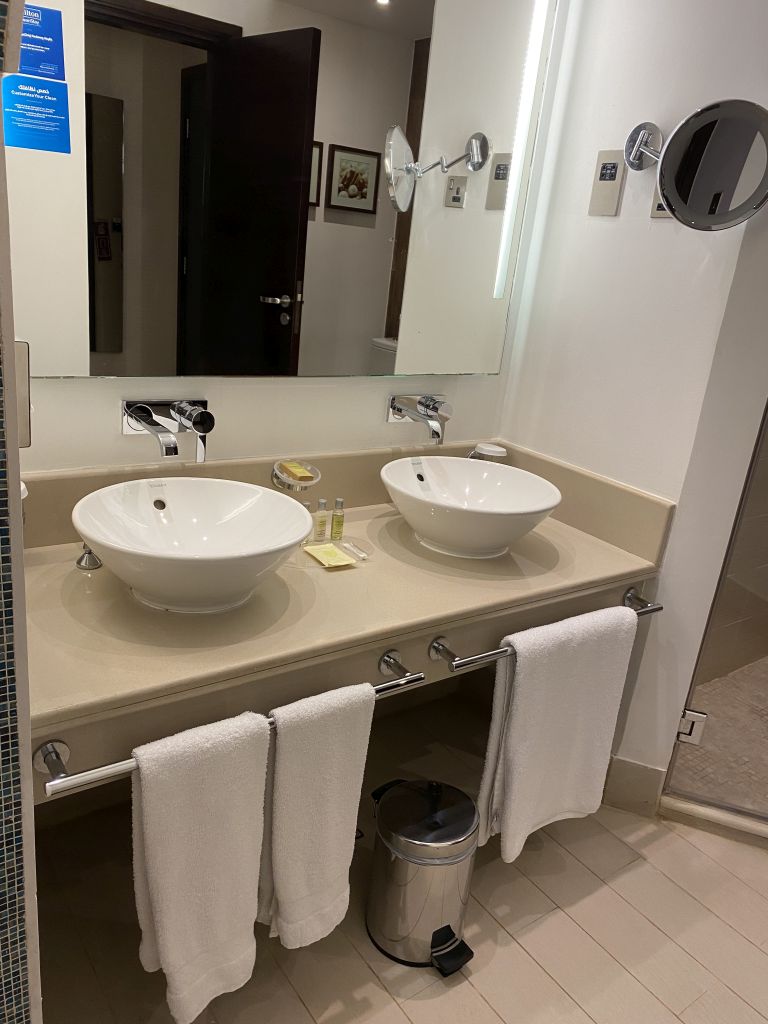 Unser Trip in die Vereinigten Arabischen Emirate Anfang August 2021 war ja sehr spontan. Und im Vordergrund stand auch, mit möglichst geringem Budget luxuriös zu reisen. Daher entschieden wir uns, obwohl sicher nicht die beste Möglichkeit, Punkte einzulösen, für einen Hilton Honors Standard Room Reward.