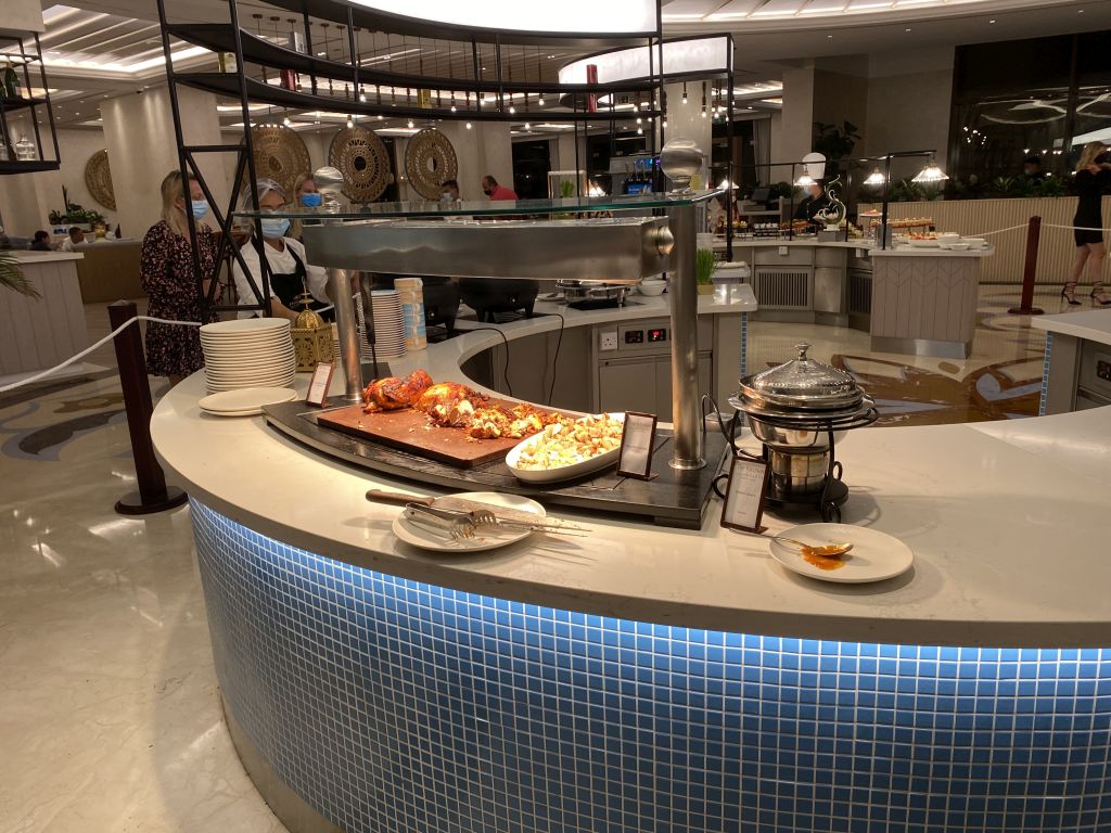 Das Haupt-Restaurant ist „The Kitchen“. Dort wird morgens bis 10:30 Uhr auch das Frühstück in Büffet-Form serviert. Auf Grund der Corona-Vorschriften war bei unseren Aufenthalten keine Selbstbedienung möglich/notwendig. Stattdessen haben ausreichend Mitarbeiter die unterschiedlichen Speisen nach Wunsch herausgegeben.