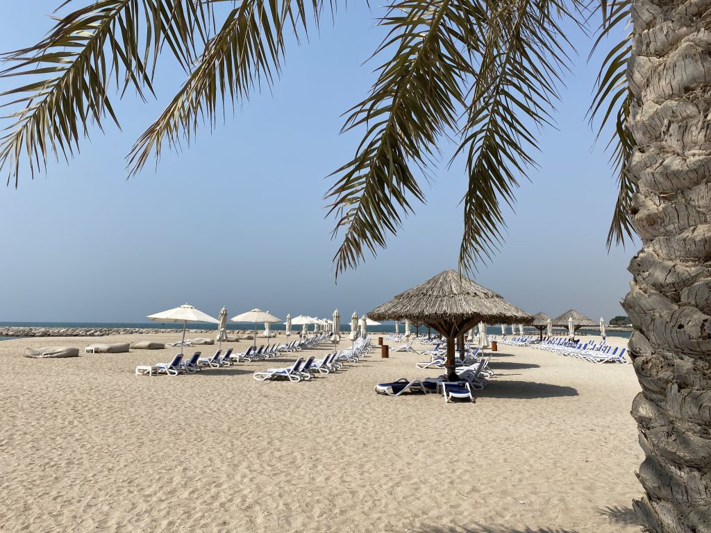 Wer es auf Strandurlaub in den Vereinigten Arabischen Emiraten abgesehen hat, kehrt schnell Dubai den Rücken zu und wendet sich in Richtung Ras al Khaimah. Nur rund 90 Minuten vom Flughafen Dubai (DXB) entfernt, finden sich eine Vielzahl Resorts direkt am Strand gelegen. So auch einige Resorts der Hilton Gruppe. Zwischen der Luxus-Marke Waldorf Astoria und dem low-budget Garden Inn in B-Lage gibt es dazwischen das Doubletree Marjan Island und das Hilton Ras al Khaimah Resort. Nach Abwägen der Vorzüge und Nachteile aller Hotels, entschieden wir uns für das Hilton Ras al Khaimah Resort.