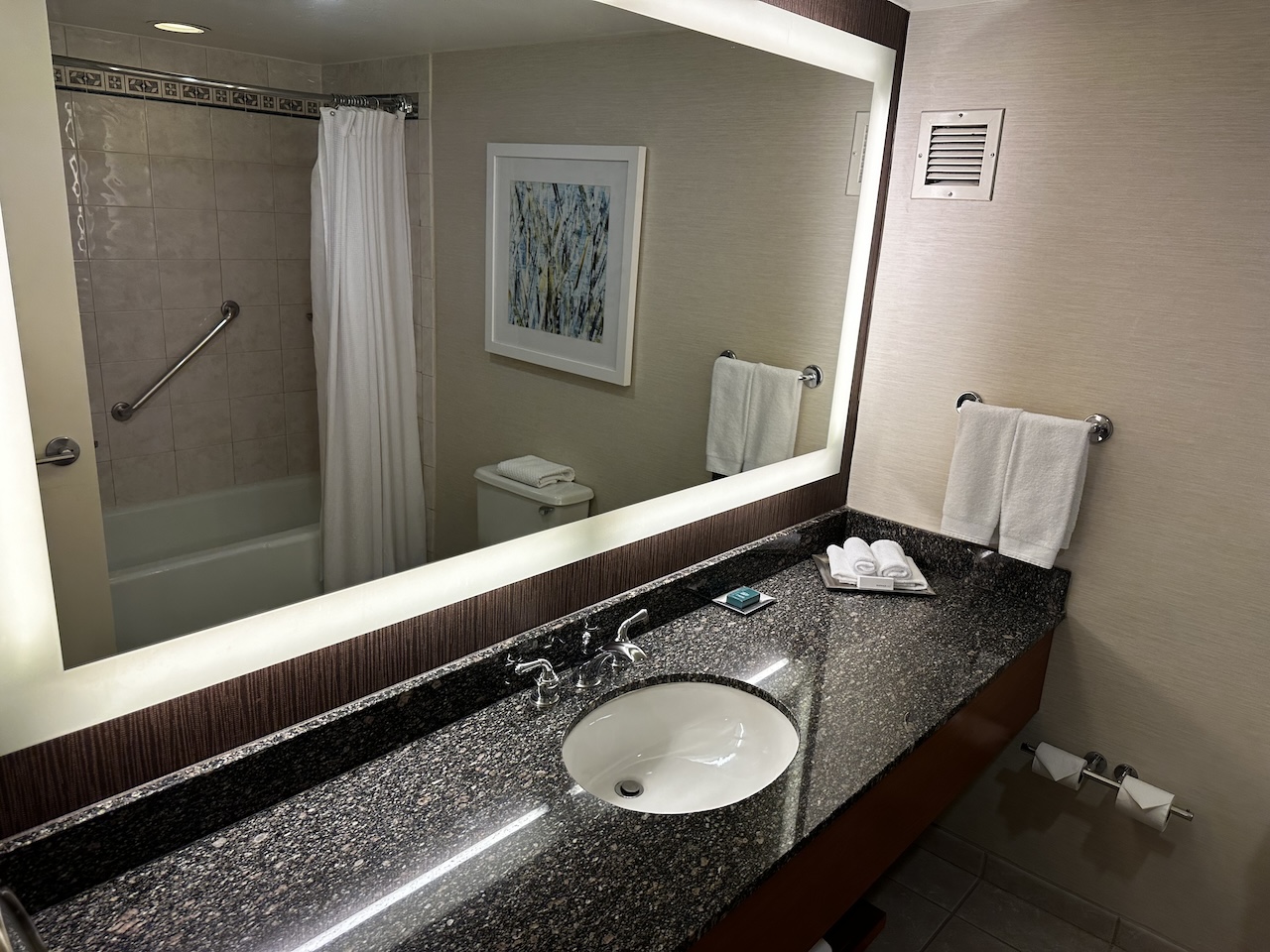 Das Hilton in SLC ist ein wirklich typisch amerikanisches Hotel- etwas altbacken aber komfortabel. Wir haben nette Mitarbeiter erlebt, konnten das Fitness ausgiebig nutzen und haben uns insgesamt ganz wohlgefühlt. Auch hier findet man keine Executive Lounge mehr, Statuskunden erhalten nur die Gutschrift als Food & Beverage Credit.
