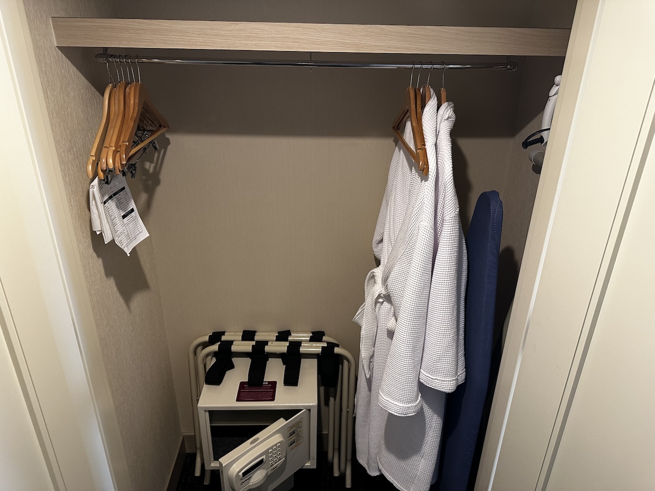Zur Ausstattung gehören Kaffeemaschine, Safe, Kühlschrank, Bügeleisen und Bademäntel.