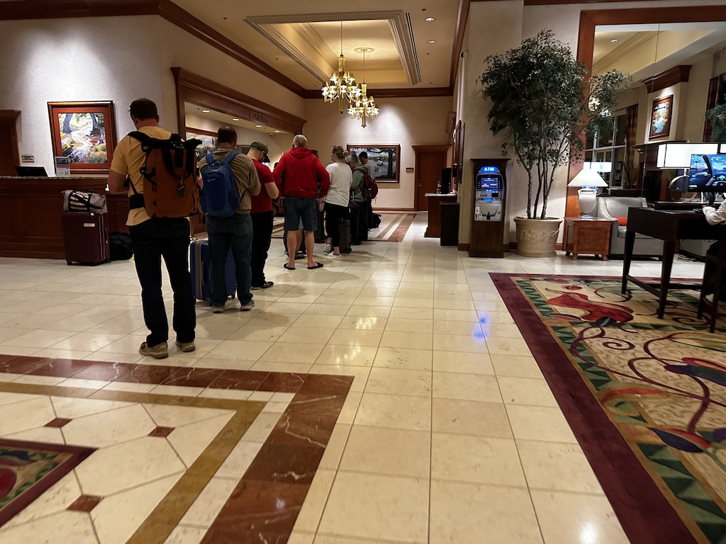 Ich hatte Glück, an der Rezeption war wenig los, ich kam gleich an die Reihe. Nur wenig später bildete sich eine lange Schlange in der Hotelhalle.