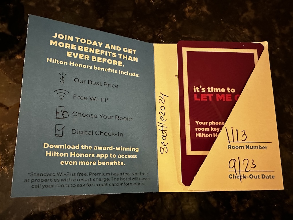 Es war erst 11 Uhr vormittags, ich musste aber in keine Diskussion einsteigen um einen frühen Check-in durchführen zu können. Die Dame fragte sogar noch nach Präferenzen was die Bettenkonfiguration angeht, gab mir zwei Wasserflaschen und die Schlüsselkarte. Dazu kam der Hinweis zu den 15$ Guthaben, die man hier als Gold- bzw. Diamond-Member erhält.