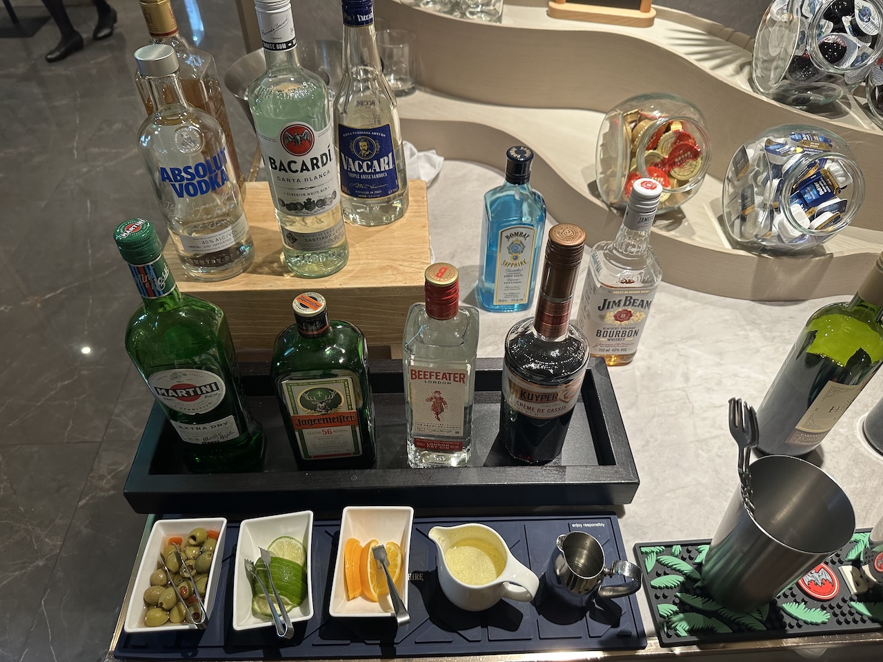 Zusätzlich werden alkoholische Getränke serviert, es gibt Wein, Sekt und Bier und viele Spirituosen bzw. Liköre.