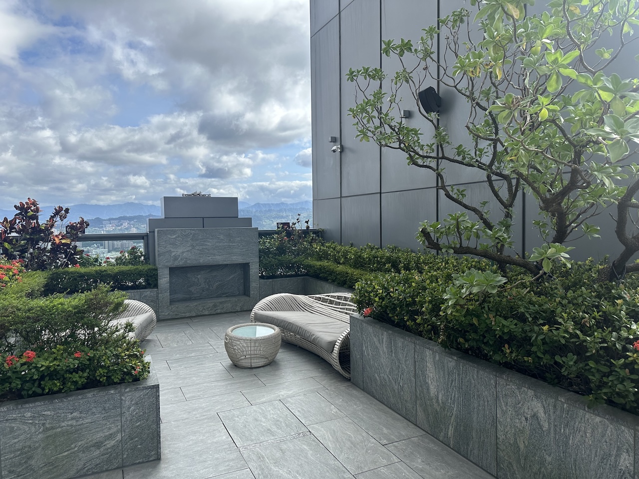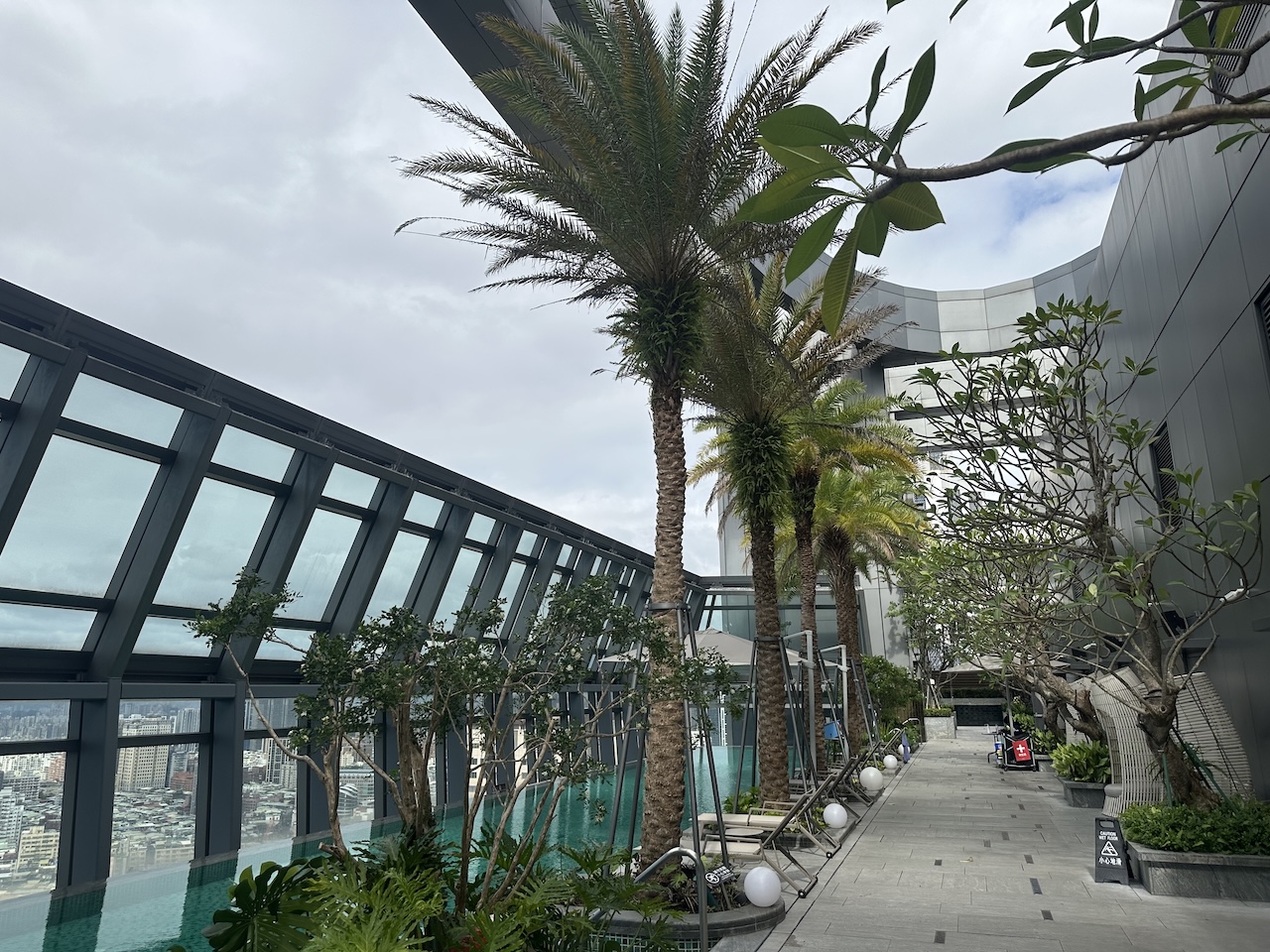 In der obersten Etage ist ein Außenpool. Der Bereich ist relativ ruhig und geschützt, man hätte zwar einen guten Ausblick, dieser ist aber größtenteils durch Pflanzen verdeckt, was dem Bereich aber auch eine schöne Atmosphäre verleiht.