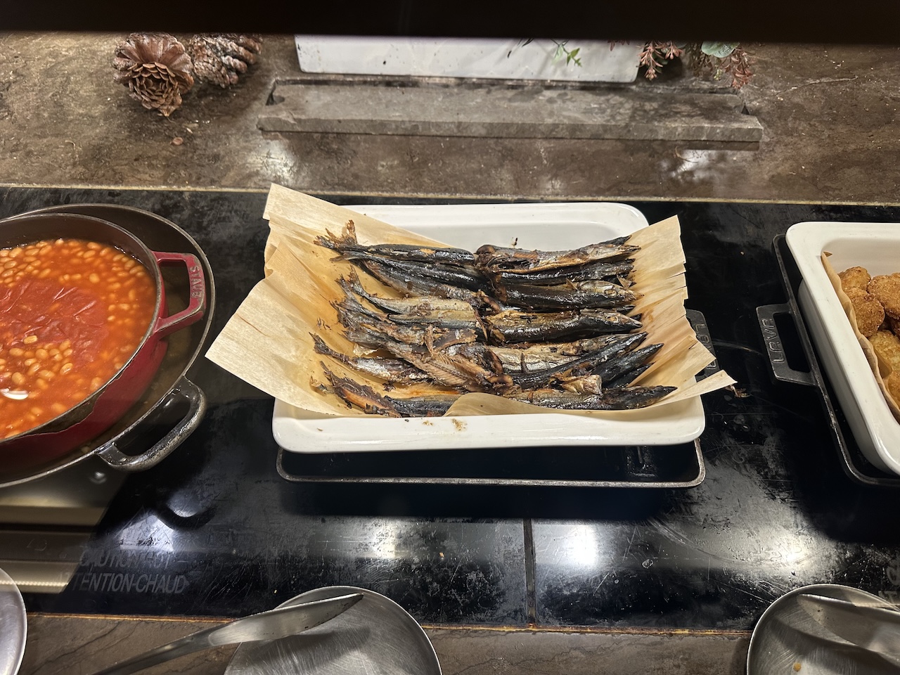 Nachmittags gibt es Kuchen, abends wird dann groß aufgefahren. Das Angebot am Buffet besteht aus Salaten, Vorspeisen und warmen Optionen sowie Dessert.