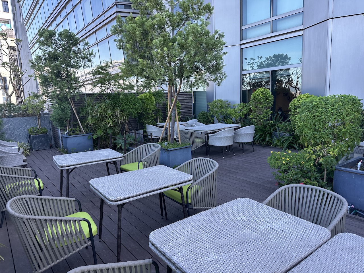 Neben diversen Sitzgelegenheiten haben die Gäste mit Diamond-Status und solche, die ein Executive-Zimmer haben auch einen Außenbereich zur Verfügung.