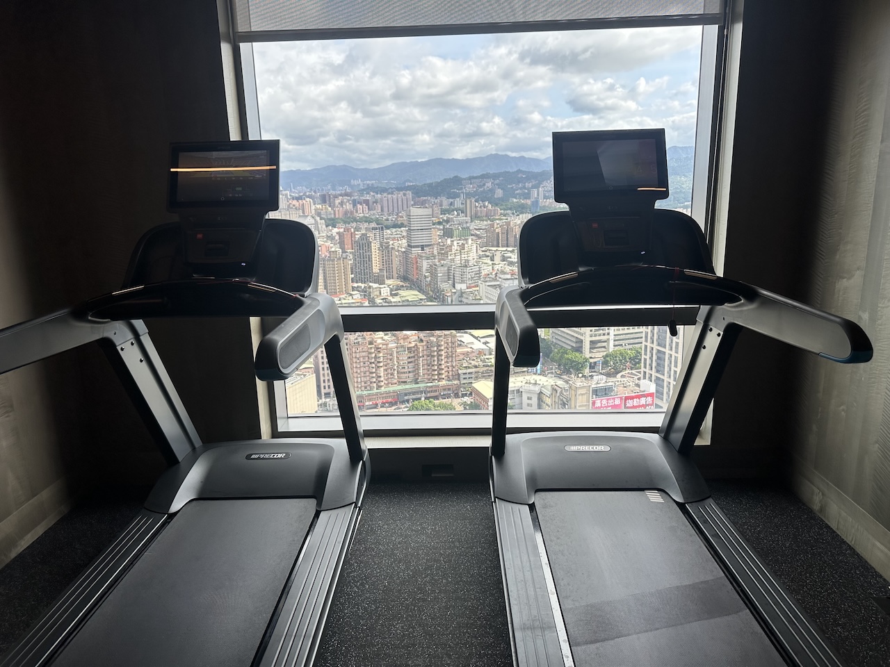 Das Fitnessstudio ist ebenfalls hier oben, teilweise hat man hier einen guten Blick auf die Metropole.