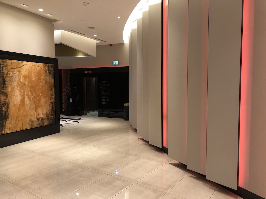 Die Lobby ist stylisch und modern, diese wurde mit geschmackvoller Loungemöbel ausgestattet. Die indirekte Beleuchtung wechselt permanent die dezenten Farben, im Mittelpunkt ist die Lobby-Bar. Zur Zeit ist diese aber geschlossen, alternativ werden Drinks im dem Restaurant serviert.