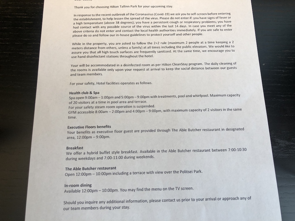 Das Hilton ist mit einem relativ neuen Haus in der schönen Stadt Tallinn vertreten. Nicht direkt in der Altstadt, aber in Laufnähe und ruhigem Umfeld an einem Park ist die Lage akzeptabel. Einrichtung, Möbel und Stil sind modern und geschmackvoll. Einige Einrichtungen sind zum einen wegen der Minimierung von Kontakten geschlossen, auf der anderen Seite versucht man mit weniger Personal auszukommen. Die Öffnungszeiten von Gym und Spa sind weniger nachzuvollziehen.