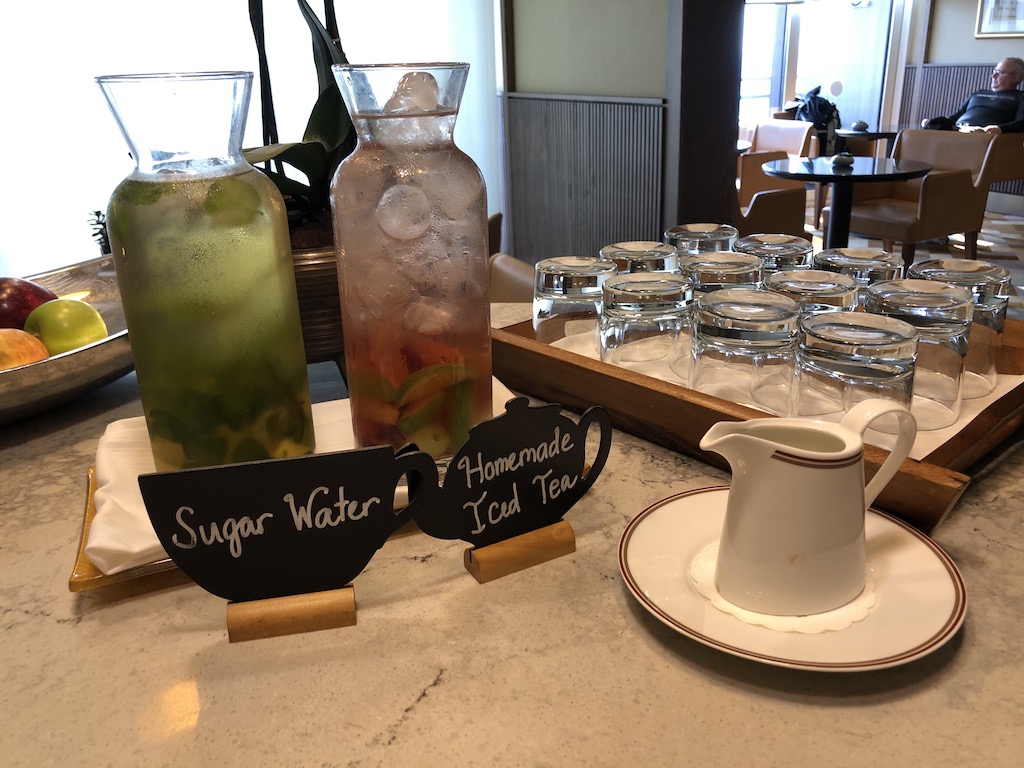Neben Frühstück und den üblichen Getränken und kleinen Snacks die es über den Tag gibt, punktet die Lounge mit einem sehr großzügigem Programm. So werden Alkoholika bereits mittags bereitgestellt und bis zum Schließen der Lounge um 23 Uhr nicht abgeräumt.