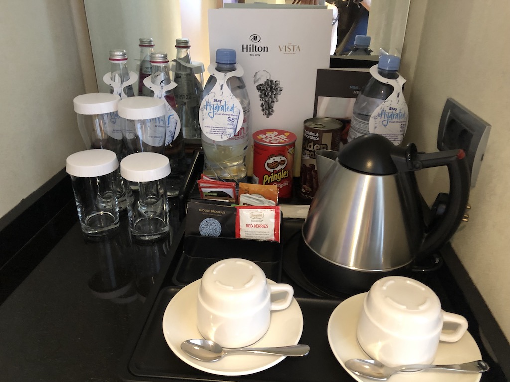 Die Hotelpreise in Tel Aviv sind generell hoch, teilweise auch extrem teuer. Dafür sind fast alle großen Ketten vertreten, so auch Hilton mit einem großen Haus direkt am Meer. In den oberen Etagen ist das Vista Hotel, ebenfalls von Hilton vermarktet und betrieben. Das Gebäude ist riesig und der erste Eindruck hat etwas von einem grauen Betonbunker. Die inneren Werte haben allerdings überzeugt!