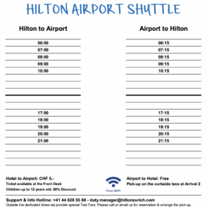 Der hoteleigene Shuttlebus benötigt weniger als zehn Minuten vom Terminal zum Hilton. Zur Zeit ist der Fahrplan ausgedünnt, der Bus fährt jeweils nur morgens und abends einmal stündlich. Die letzte Verbindung am Abend war um 21:15, diese haben wir knapp verpasst. Das Hotel hat mir innerhalb von wenigen Minuten auf eine E-Mail geantwortet und auf den öffentlichen Bus hingewiesen.