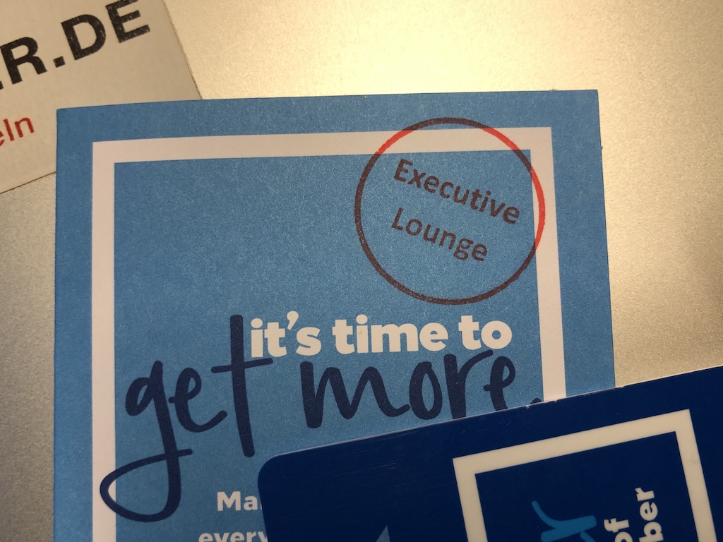 Mit einem Hinweis auf das Upgrade erhielten wir die Schlüsselkarten, ein Stempel auf dem Etui sollte die Nutzung der Executive-Ecke im Restaurant sicherstellen.