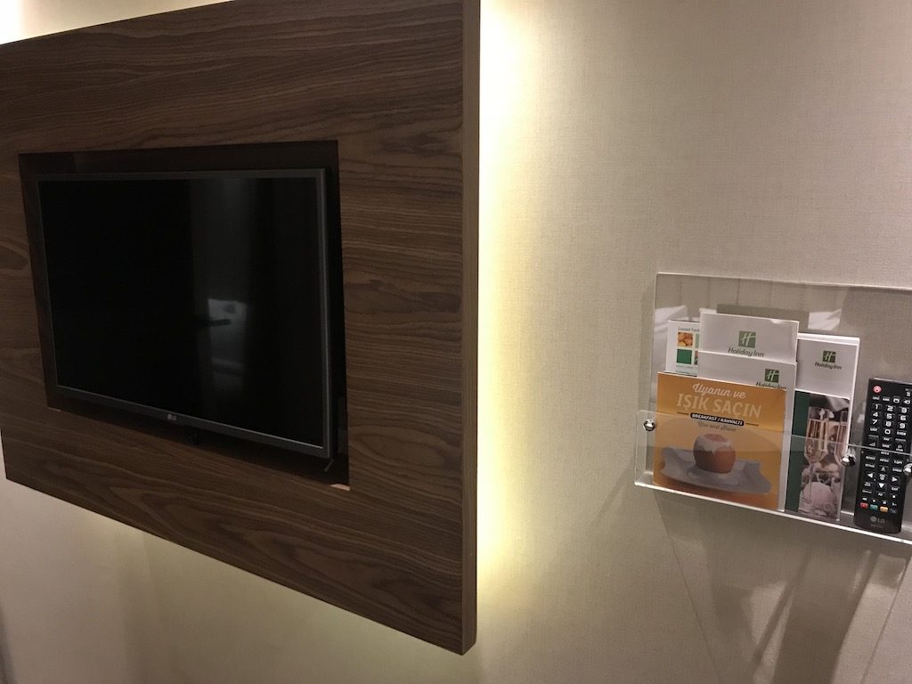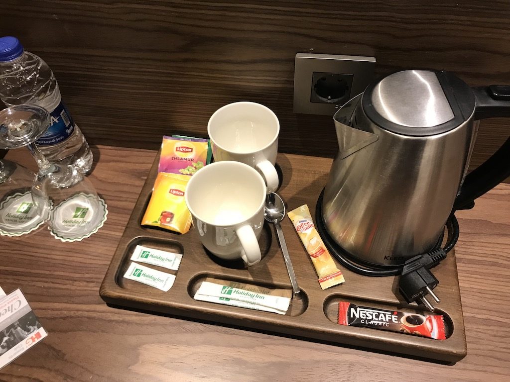 Typisch für die Holiday Inn und Holiday Inn Express Hotels sind auch die Wasserkocher und Instant-Kaffeesets, auch ein solches gab es in meinem Zimmer. Dazu einen Fernseher, auf dem auch deutsche Fernsehsender eingerichtet waren.
