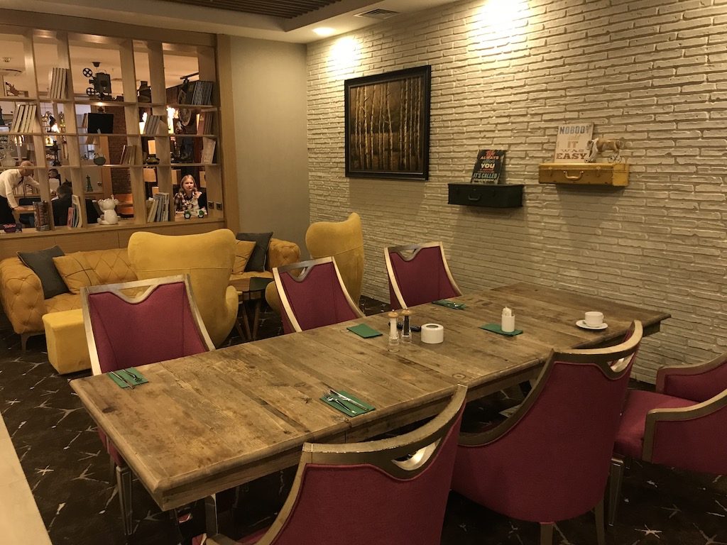 Für das Frühstück musste ich, da es nicht in meiner Rate enthalten war, TRY 30,00 bzw. EUR 7,00 bezahlen – diese haben sich aber wirklich bezahlbar gemacht. Den Gästen steht im Erdgeschoss ein Buffet mit verschiedenen Brotsorten und –aufstrichen, Müslisorten und Obst bzw. Gemüse zur Verfügung. Dazu werden in Selbstbedienung Kaffee und Kaltgetränke angeboten.