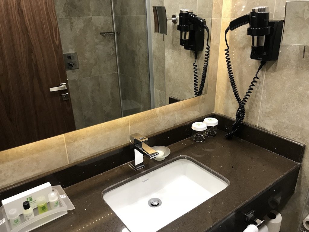 Als ich gegen 22:00 Uhr im Hotel ankam, wurde ich sehr freundlich begrüßt und hielten nach einigen Minuten meine Zimmerkarte für den Queen Bed Room mit Meerblick im elften Stock in der Hand. Als IHG-Platinum Member hatte ich auch hier die Auswahl zwischen einer Extra-Punktegutschrift oder einem Gutschein für ein Getränk sowie einen Snack.