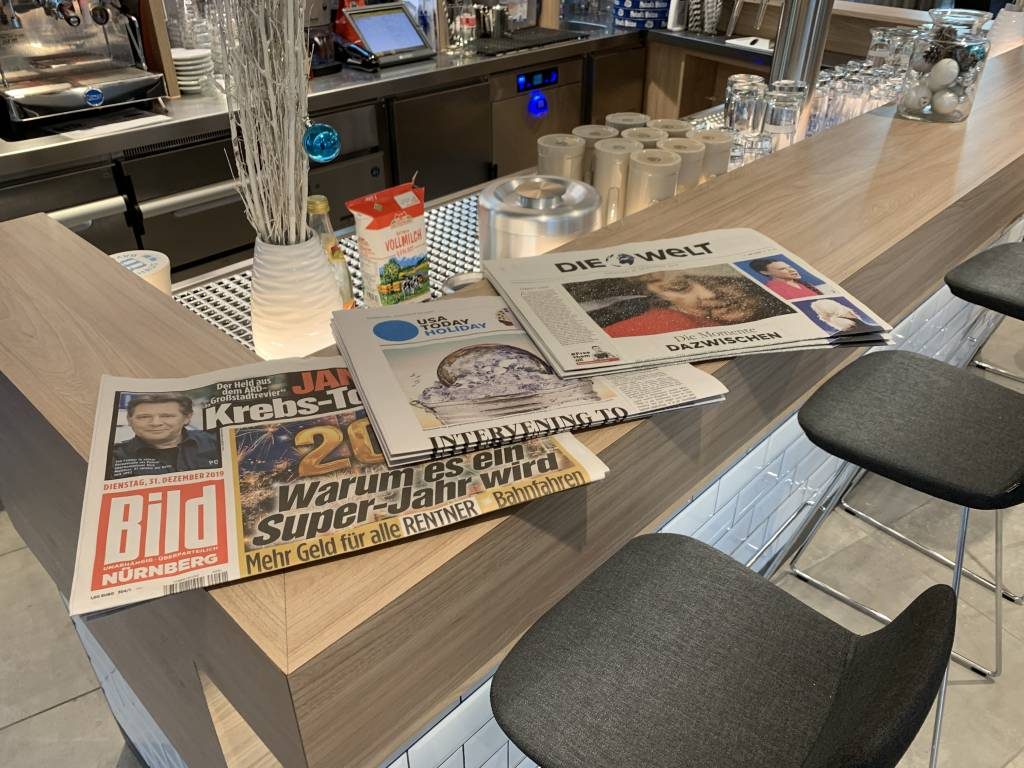 Selbst eine Auswahl an Tageszeitungen war im Bar-Bereich für Hotelgäste vorhanden.