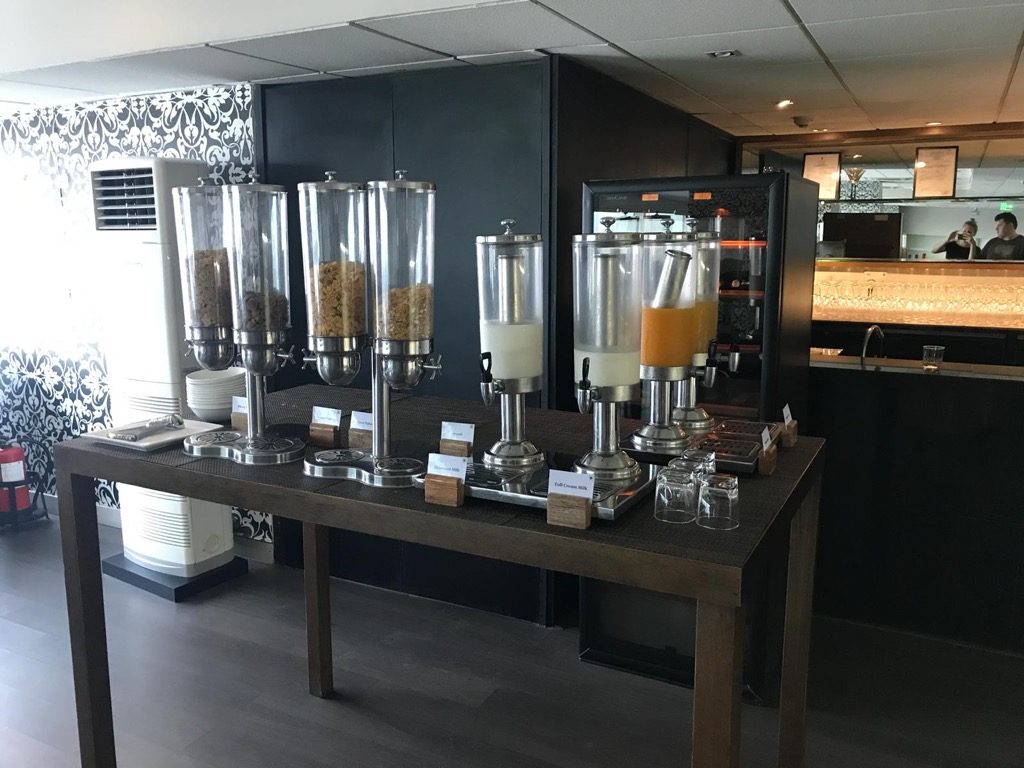 Das Frühstück war, wenn man bedenkt, dass die Übernachtung 120€ gekostet hätte, ziemlich mickrig. Man konnte etwas zu sich nehmen, den Hunger etwas stillen, aber wirklich satt wurde man nicht. Zum Glück hatten wir am späten Abend Weiterfluge mit Loungezugang.