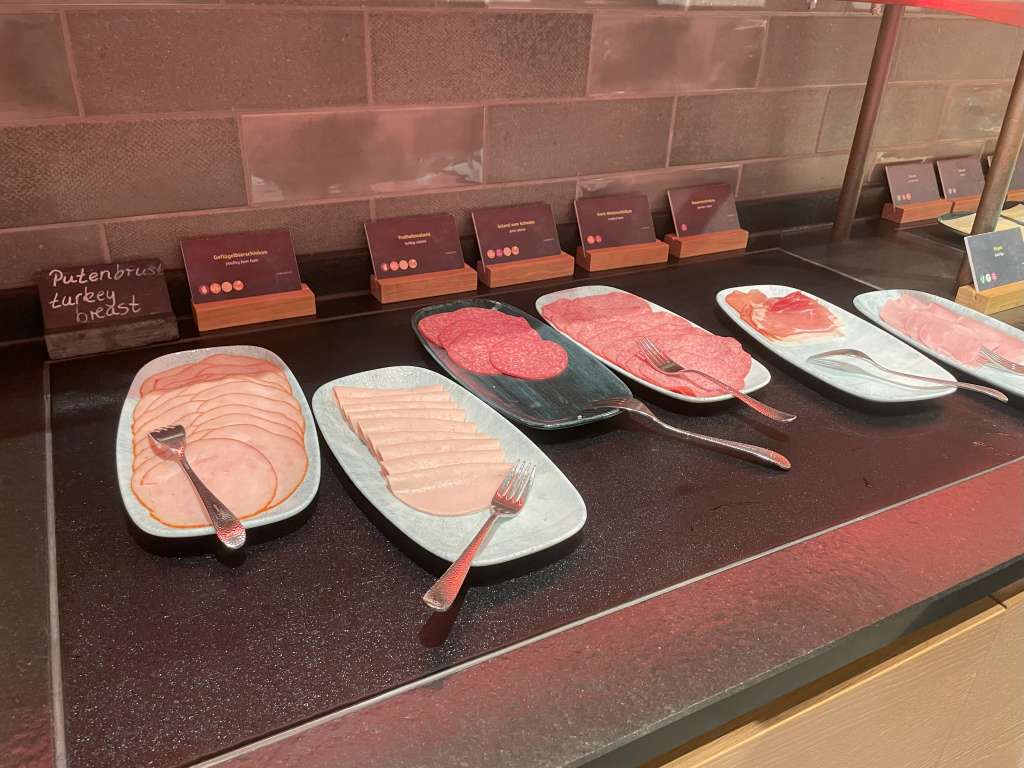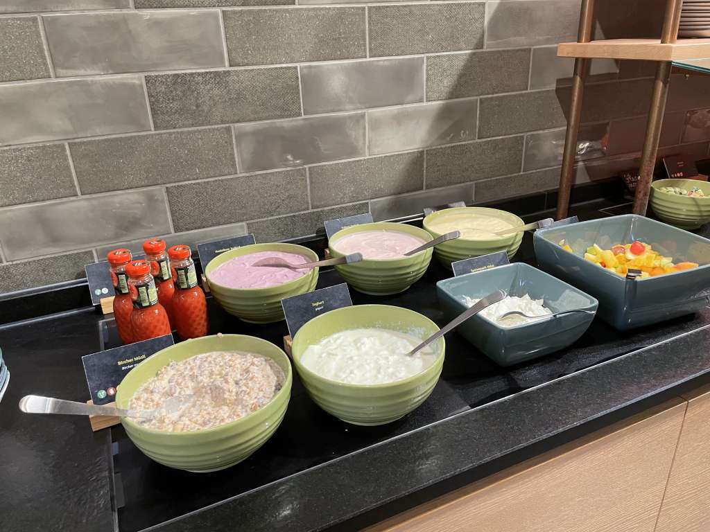 Mittlerweile habe ich mir angewöhnt, in Hotels das Frühstück nicht mehr zu verschmähen. Selbst wenn ich äußerst früh unterwegs bin, gehört zumindest eine kleine Stärkung zur Routine. Das Holiday Inn Osnabrück bietet nun keine luxuriösen Wurst- und Käseaufschnitte, bietet aber sonst ein völlig solides Frühstück, das jederzeit optisch ansprechend wirkte.