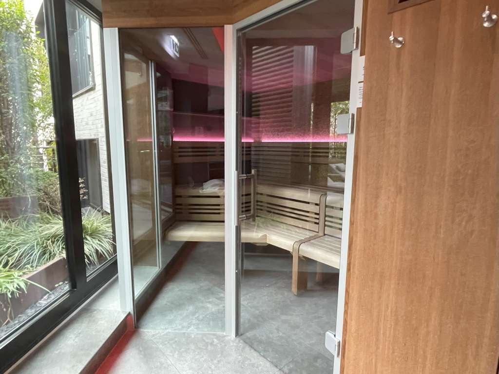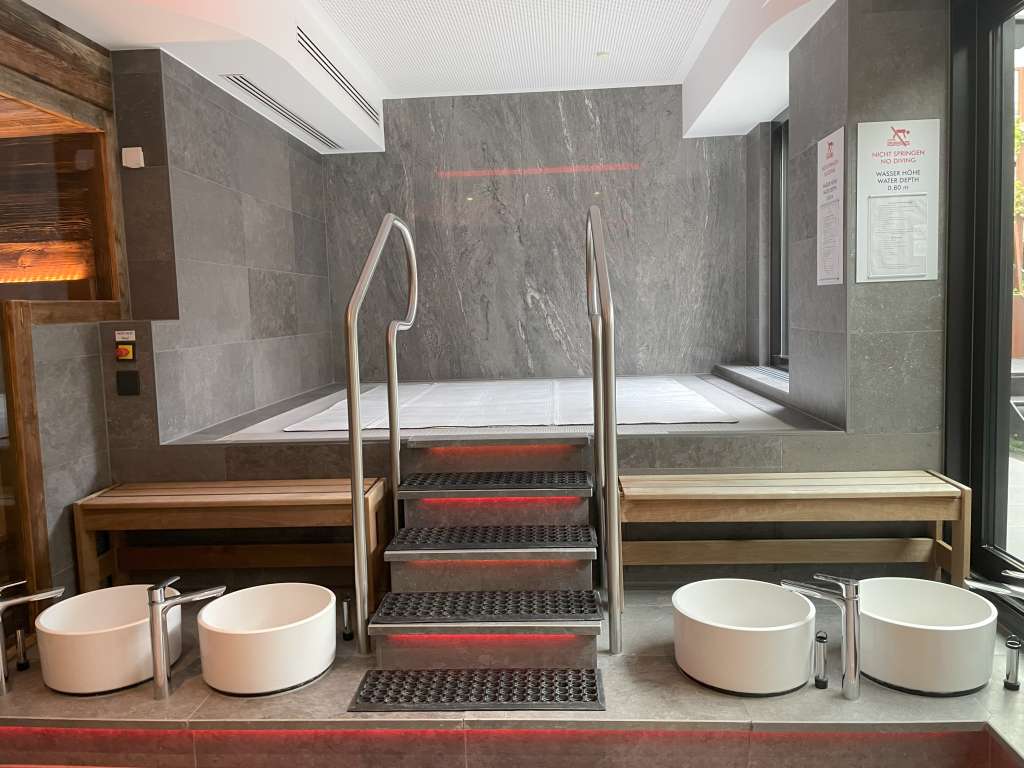 Während der Fitnessraum bereits morgens öffnet und dann durchgehend bis 22 Uhr verfügbar ist, steht der Wellnessbereich erst um 16 Uhr zur Verfügung. Schade eigentlich, denn der Bereich, der direkt vom Fitnessraum nach rechts abbiegt, gehört zu den beeindruckendsten Plätzen im Hotel. Solch einen gemütlichen Wellness-Bereich hätte ich in einem Holiday-Inn-Hotel nicht erwartet. Denn neben einer finnischen Sauna und einem Sanarium gibt es sowohl im Innenbereich als auch auf einer Außenterrasse Entspannungsbereiche. Selbst ein Whirlpool und Fußbäder gehören zur Ausstattung.
