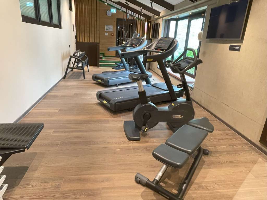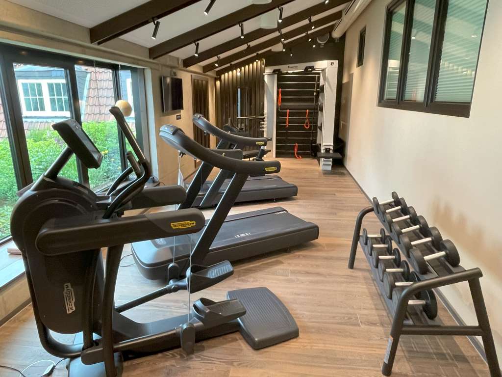 Etwas untypisch stand die morgendliche Laufeinheit nicht auf dem Plan meiner Hotel-Routine im Holiday Inn Osnabrück. Trotzdem stattete ich dem Bereich einen Besuch ab und war auf den ersten Blick etwas enttäuscht. Während das Hotel über sehr großzügige Einrichtungen verfügt, wirkte der Fitnessraum eher überschaubar. Aber es war mit zwei Laufbändern, einem Stepper, einem Bike, einer Bank und weiteren Geräten so ziemlich alles vorhanden, was man für ein Workout benötigt. Auch ein Wasserspender ist vorhanden. Während des Workouts können sich Fitness-Freaks entscheiden, ob sie in den Innenhof oder auf den Fernsehbildschirm schauen wollen.