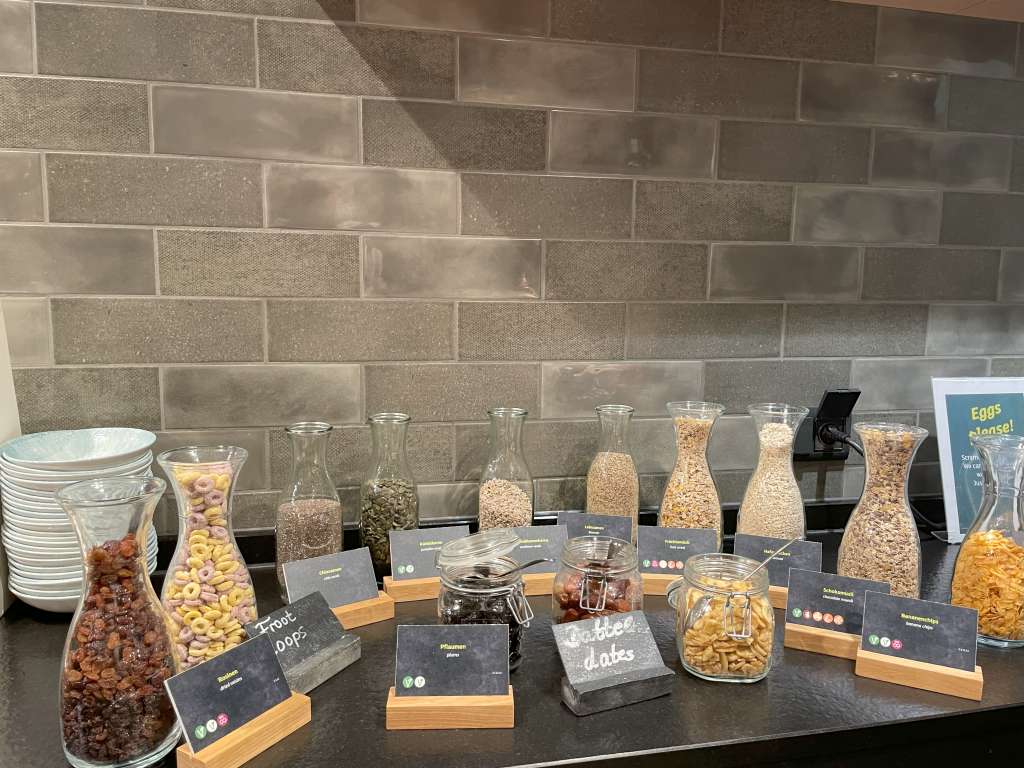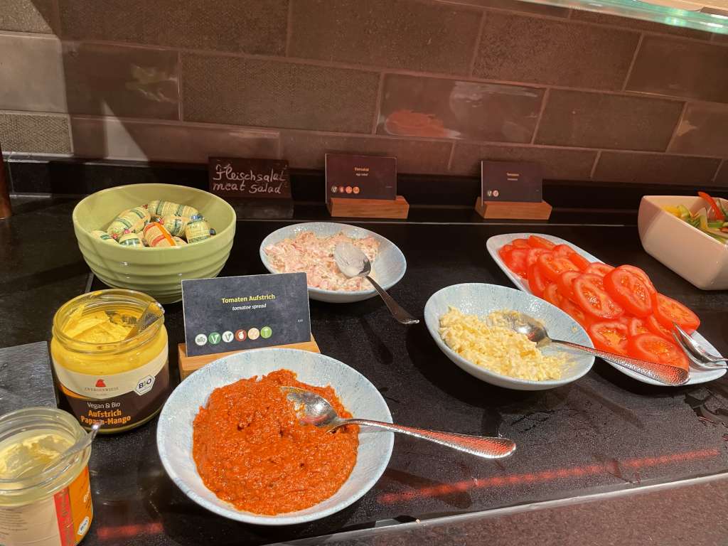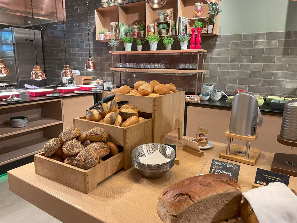 Es war unter der Woche, und ich war recht früh beim Frühstück. Zu der Zeit war auch schon einiges los und gefühlt die besten Tische bereits besetzt. Für Tagungsgäste gibt es noch einen separaten Frühstücksraum in einem Glaskasten.