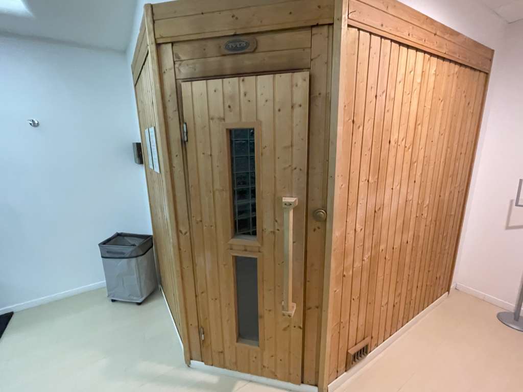 Im Fitnesscenter befindet sich auch eine Sauna und zwei Liegen, die eher an einen schlecht ausgestatteten Vorort-Sportverein als an einen Ruheraum erinnerten.