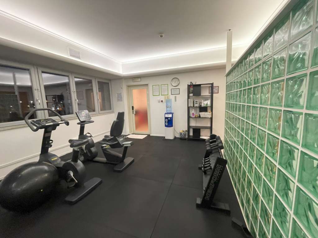 Länger sind die Öffnungszeiten des Fitnesscenters, welches um 06:30 Uhr öffnet und abends um 22:00 Uhr schließt. Das Fitnesscenter verfügt beispielsweise über Hanteln, Stepper und Laufbänder. Für eine Erfrischung sorgt ein Wassersepnder und auch Handtücher sind vorhanden. Da der Ausblick aus dem Fitnesscenter nicht so spannend ist, bietet ein Fernseher ein alternatives Unterhaltungsprogramm.