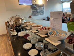 Das Getränkeangebot war ehrlich gesagt nicht besser. Den Gin Tonic, Whiskey Cola oder was auch immer, hat es auch hier nur auf Rücksprache mit dem Personal gegeben. Softdrinks gab es – ihr kennt es schon – aus großen PET-Flaschen. Obwohl auch Wein da war, nippte ich verlegen an meiner Coke Zero und passte den Zeitpunkt ab, an dem ich unauffällig die Lounge wieder verlassen konnte. Da arbeiteten ja immerhin Menschen und denen wollte ich nicht zu nahe treten.