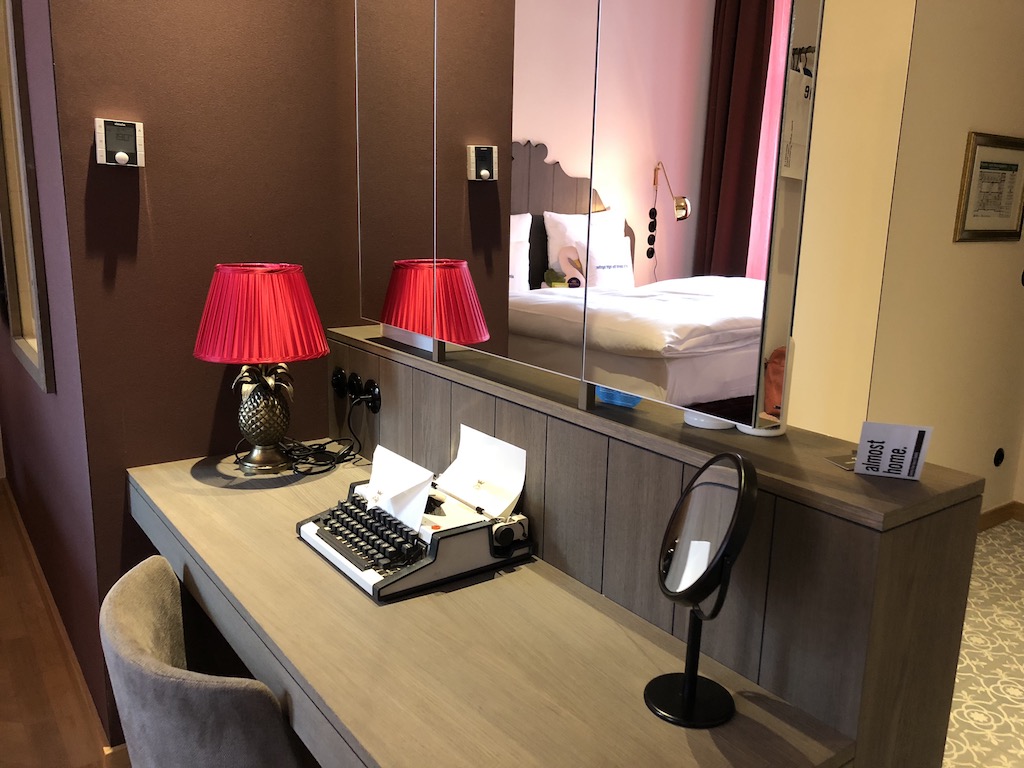 In der Lobby wurden wir von zwei freundlichen Rezeptionisten mit einem herzlichen Servus begrüßt. Es wurde auch geduzt, was zuerst befremdlich wirkte, aber für mich doch einen positiven Charme hat und einen direkt etwas heimeliger fühlen lässt. Die Lobby selbst war von oben bis unten perfekt gestaltet. Im Gesamten Hotel finden sich Design-Details, welche die Geschichte des Hauses (es diente als Oberpostamtsgebäude und königliche Telegrafenstation) wiederspiegeln. So kann jeder Gast auf Schreibmaschinen Briefe tippen, auf einem Flügel sein Bestes geben oder im angrenzenden „Boiler Room“ einen leckeren Cocktail trinken – eine Bar, welche mir sogar von einem „Münchner Insider“ wärmstens empfohlen wurde, und sicher nicht in das graue Meer seelenloser Hotelbars zu zählen ist.