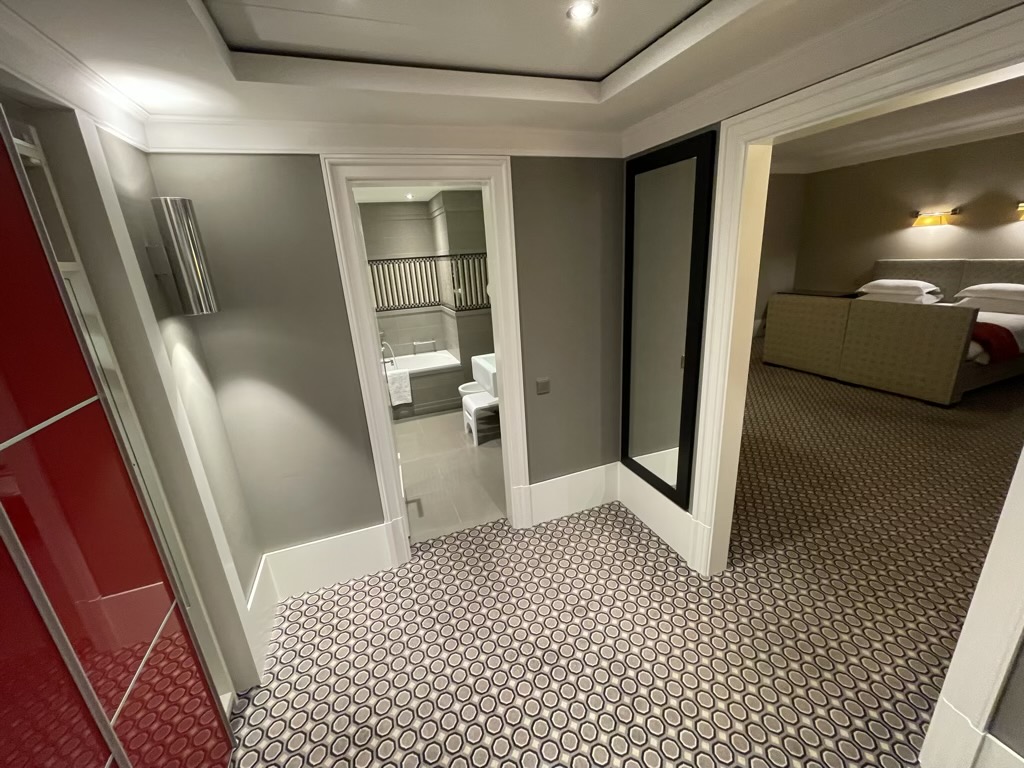 Schön fand ich auch, dass man beim Betreten des Zimmers nicht direkt in diesem stand, sondern es gab einen kleinen Vorraum, wie in einer Suite (nur ohne Wohnzimmer). Hier befand sich auch der Kleiderschrank und das Badezimmer.