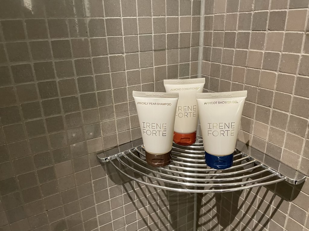 Die Pflegeprodukte im Bad waren übrigens von Irene Forte, einer Marke, die mir persönlich nichts sagte, aber es ist wohl eine der Luxus Marken aus Italien. Einzuwenden hatte ich gegen die Produkte und das gut ausgestattete Bad übrigens nichts.