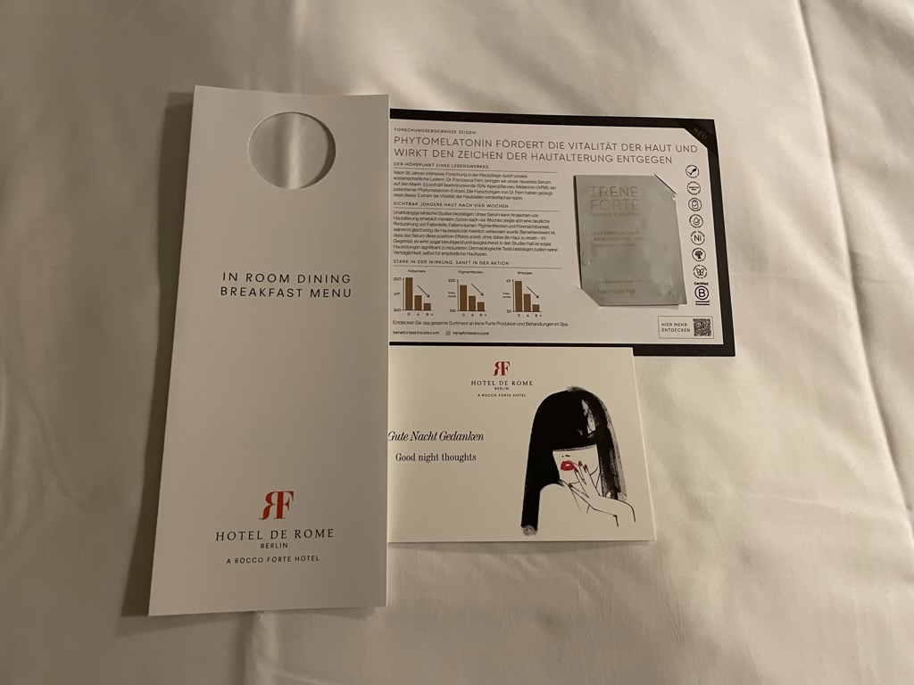 Was mich persönlich aber auch immer begeistert sind gut ausgestattete Booklets auf dem Hotel Zimmer. Hier konnte das Rocco Forte Hotel de Rome in Berlin auch voll punkten, denn nicht nur gut gemachte Informationen über das Hotel fand man hier, sondern auch Speisekarten, Briefpapier und Postkarten und auch eine Karte von Berlin.