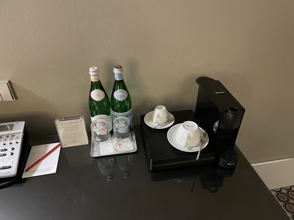Auf dem Zimmer standen auch schon zwei Flaschen Wasser (Natürlich von San Pellegrino) neben dem Bett und auch ein Willkommensgruß, inklusive einem Brief von Frankfurtflyer Hotels und dem Hotel Manager waren hier schön drapiert.