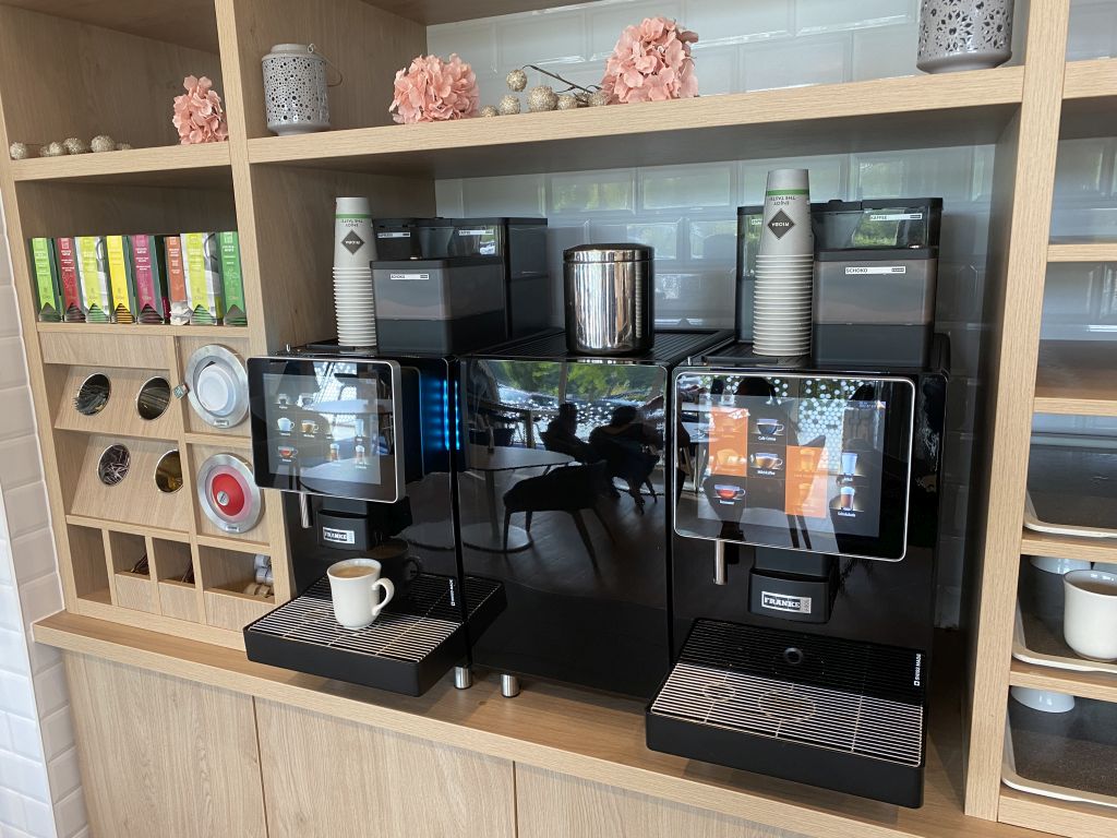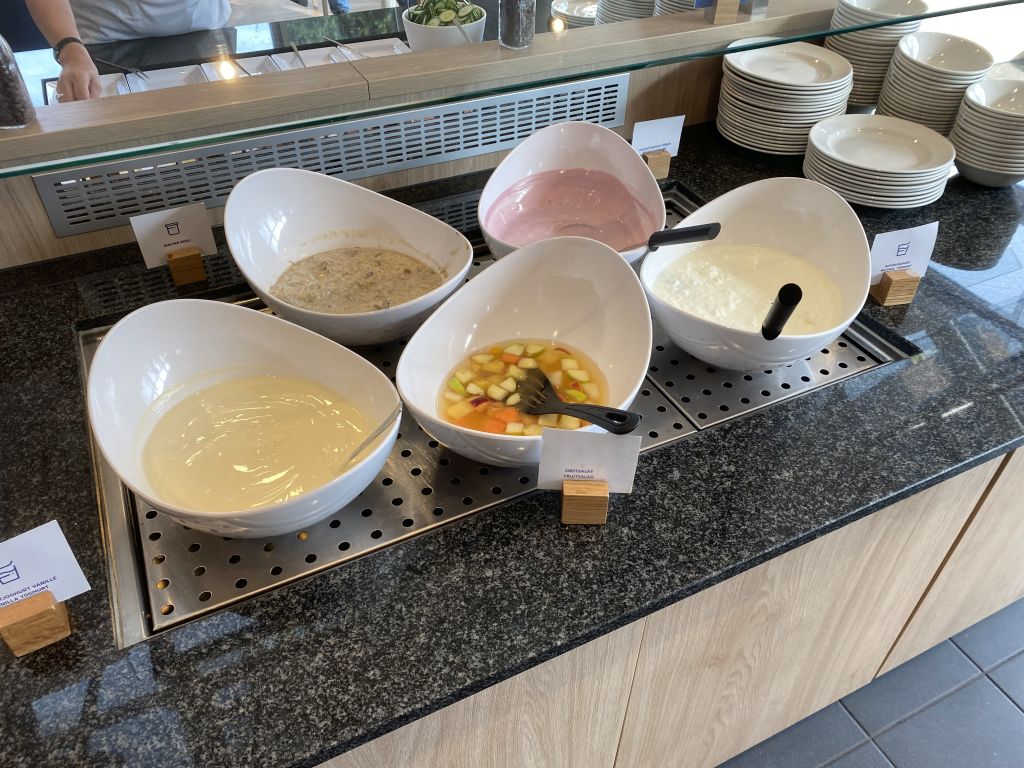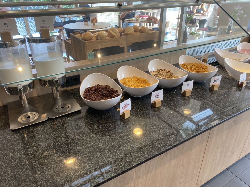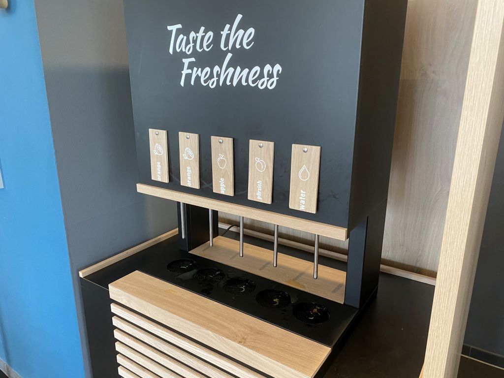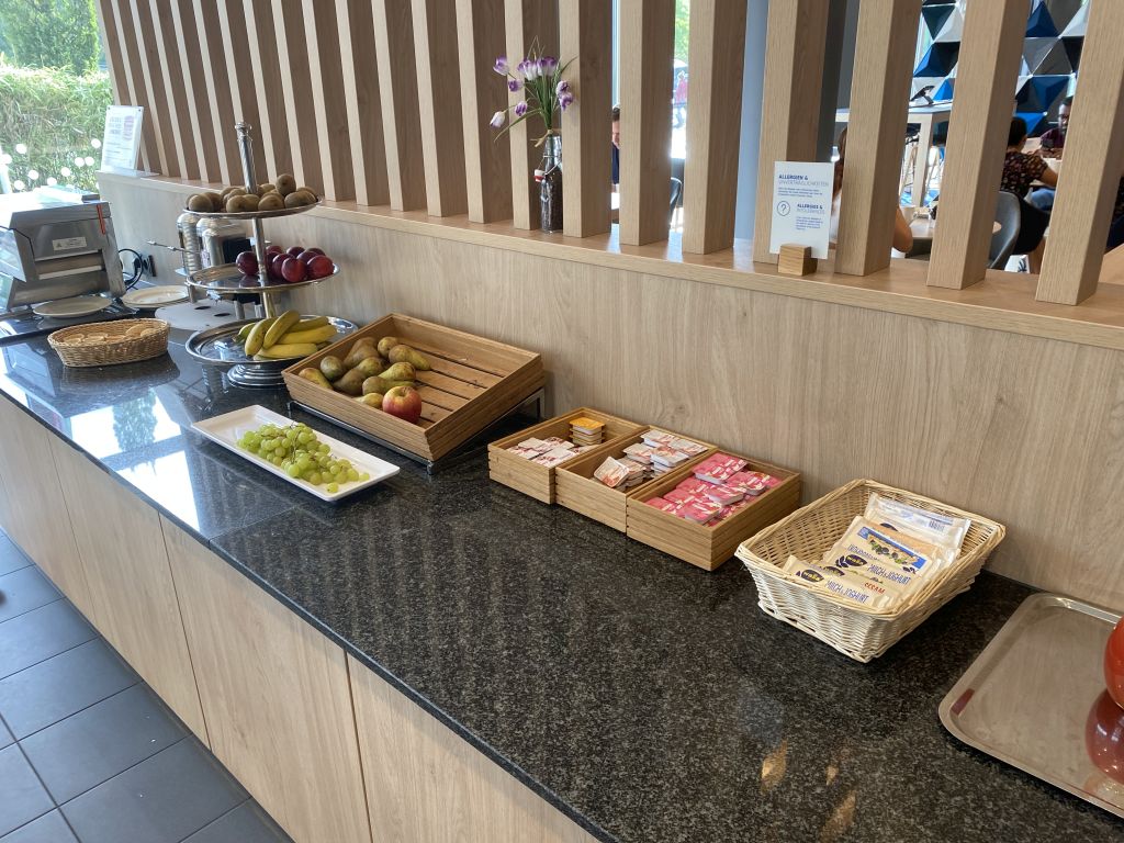 Bei Holiday Inn Express Buchungen ist das Frühstück ja immer inkludiert und daher sollte man keine Offenbarungen erwarten. Aber auf der anderen Seite fehlt es allerdings auch an nichts. Denn für Heißgetränke stehen Kaffeeautomaten zur Verfügung und Säfte zieht Ihr Euch am Automaten.