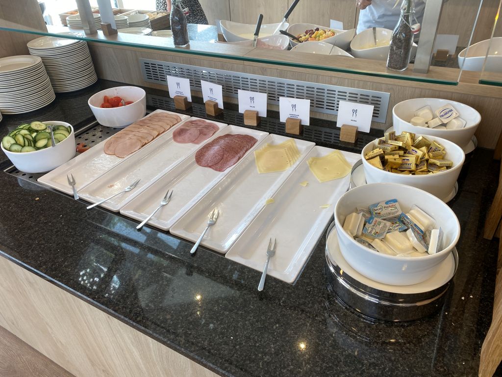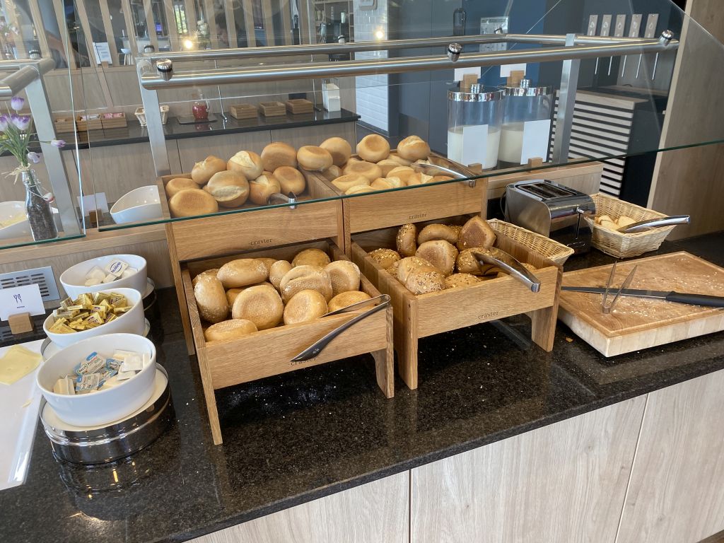 Die Auswahl an Brötchen ist in Ordnung und zu meiner Freude gab es vollwertige große Brötchen, wie auch Laugenstangen. Dazu konnte ich mich an Wurst, Käse und Marmelade bedienen. Außerdem gab es noch Müsli, Cerealien, Joghurt und Obst.