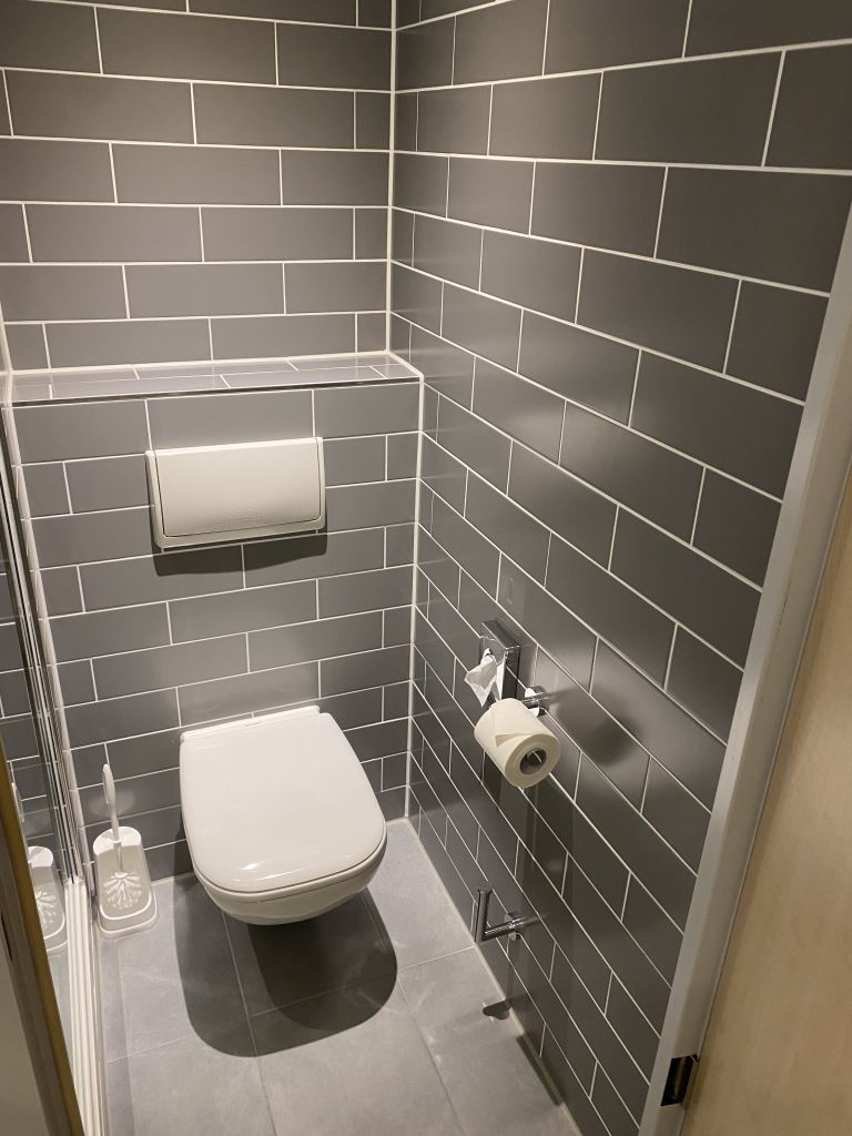 Und das Funktionale trifft auch auf das Bad zu. Bad betreten, eine Teilumdrehung für das Händewaschen, eine weitere Teilumdrehung für die Dusche und ein Schritt zur Seite in die Toilette. Mein Highlight ist übrigens immer die Kombitür, mit der man entweder Toilette oder Badezimmer schließt.