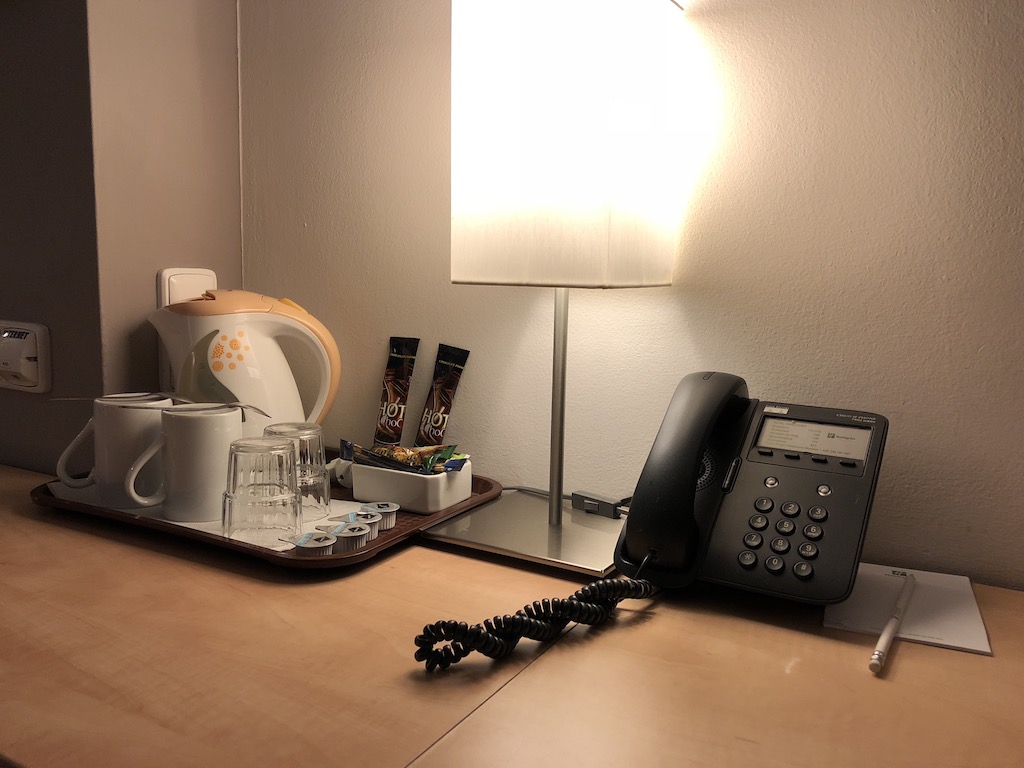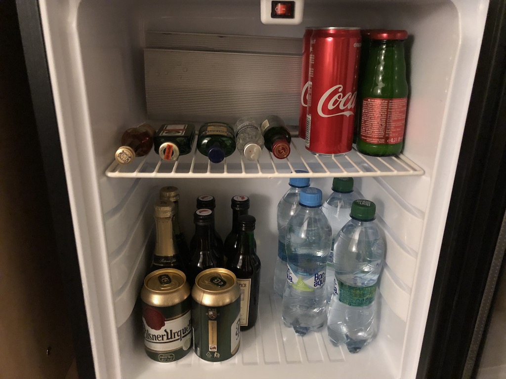 Weitere Annehmlichkeiten waren Wasserkocher mit kostenfreiem Tee und Kaffee, sowie einer Minibar und Snackkörbchen. Vier Flaschen Wasser und ein Schokoriegel waren gratis, die übrigen Produkte der Minibar kostenpflichtig.
